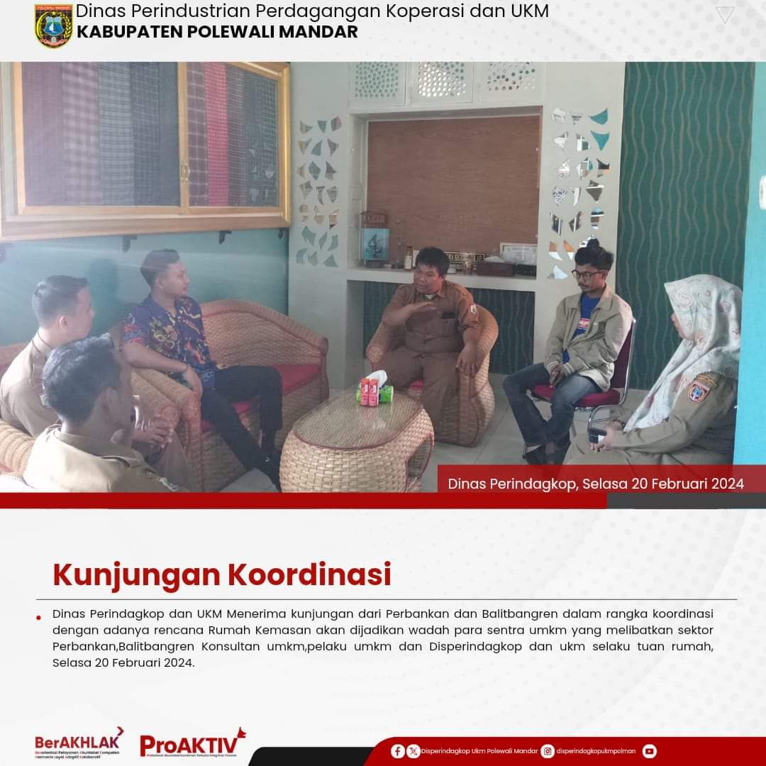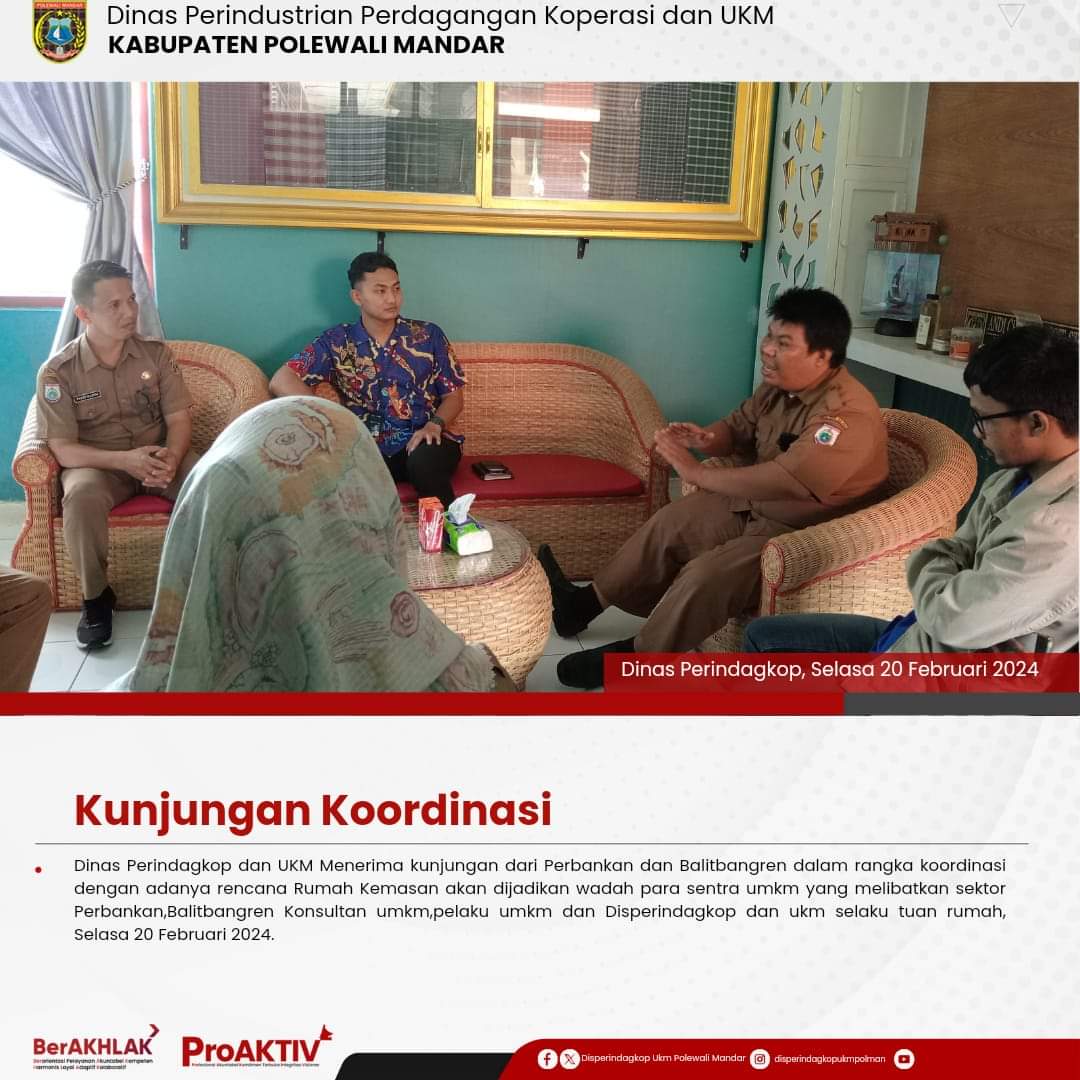 Kepala Dinas Perindustrian, Perdagangan, Koperasi dan UKM Kabupaten Polewali Mandar, Andi Chandra Sigit, ST., M.A.P beserta Kepala Bidang Koperasi, Nabil Wijdan Al Hamdani, S.STP. M.Si menghadiri undangan Rapat Konsolidasi Koperasi Desa Merah Putih yang berlangsung di Hotel Maleo pada tanggal 6 hingga 8 November 2025. Kegiatan ini dilaksanakan dalam rangka memperkuat koordinasi dan sinergitas antar lembaga dalam pengembangan sektor koperasi dan usaha kecil menengah di daerah....