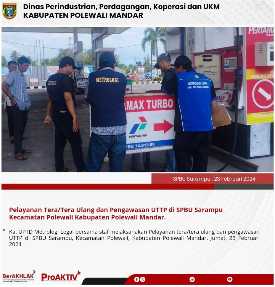 Pelayanan Tera/Tera ulang pengawasan UTTP di SPBU Sarampu Kec. Polewali Kab. Polewali Mandar