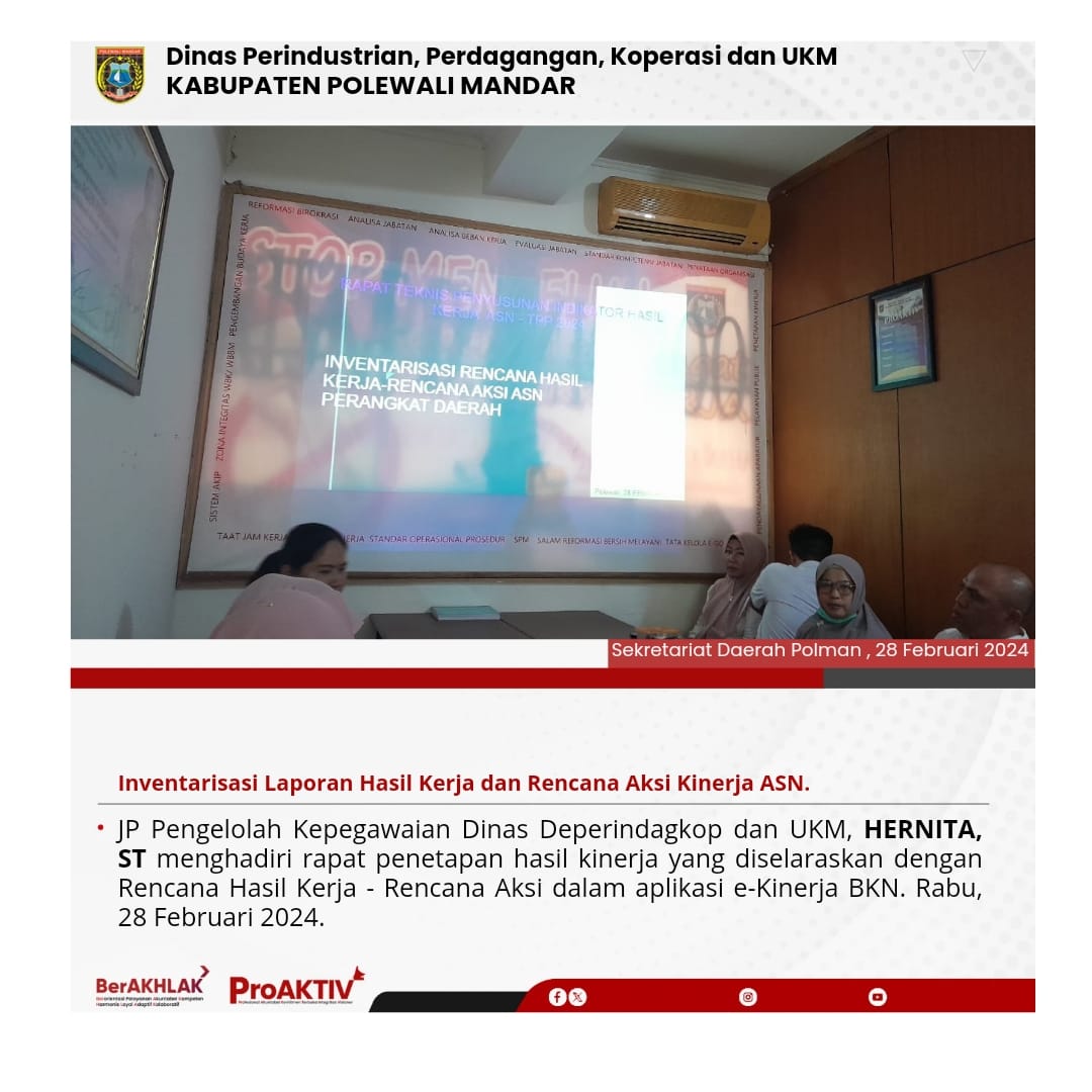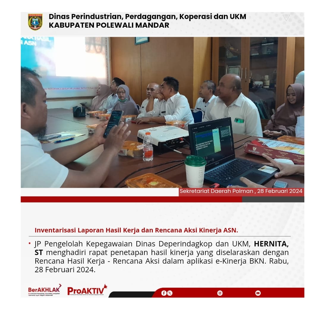 Kepala Dinas Perindustrian, Perdagangan, Koperasi dan UKM Kabupaten Polewali Mandar, Andi Chandra Sigit, ST., M.A.P beserta Kepala Bidang Koperasi, Nabil Wijdan Al Hamdani, S.STP. M.Si menghadiri undangan Rapat Konsolidasi Koperasi Desa Merah Putih yang berlangsung di Hotel Maleo pada tanggal 6 hingga 8 November 2025. Kegiatan ini dilaksanakan dalam rangka memperkuat koordinasi dan sinergitas antar lembaga dalam pengembangan sektor koperasi dan usaha kecil menengah di daerah....