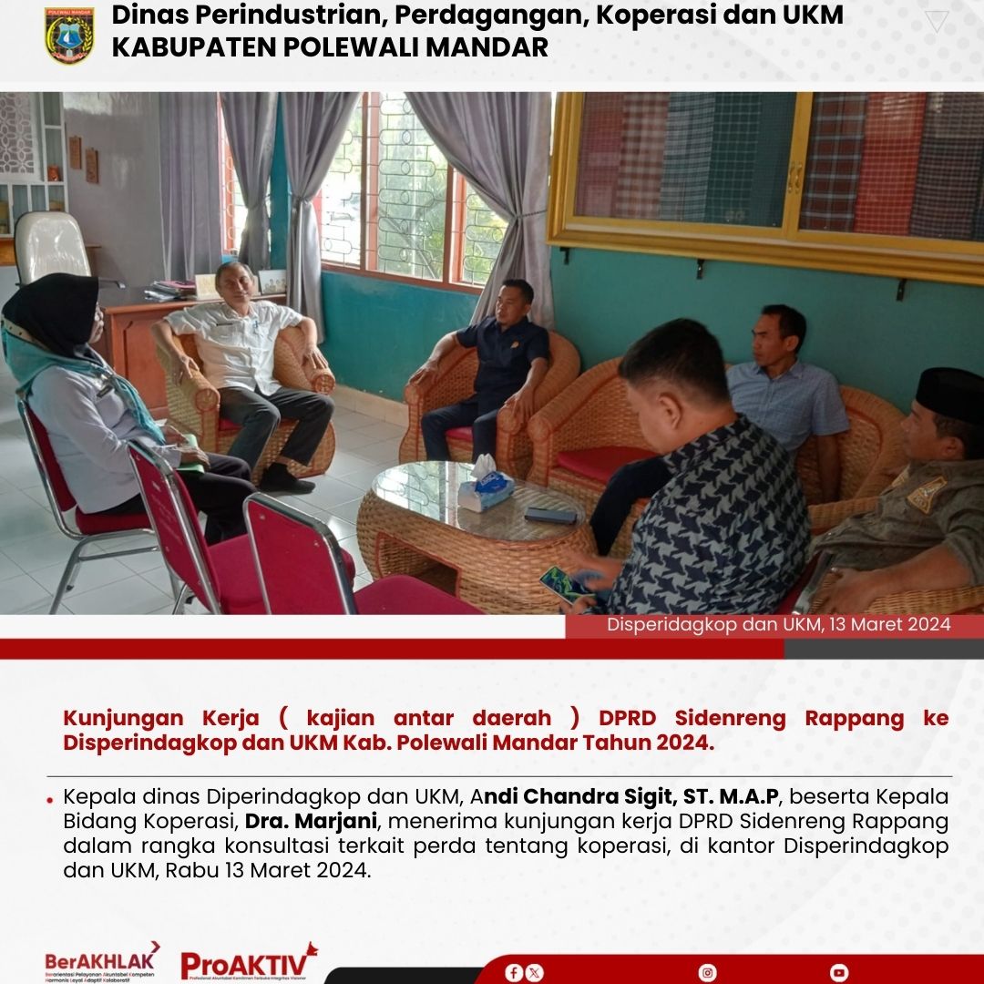 Kepala Dinas Perindustrian, Perdagangan, Koperasi dan UKM Kabupaten Polewali Mandar, Andi Chandra Sigit, ST., M.A.P beserta Kepala Bidang Koperasi, Nabil Wijdan Al Hamdani, S.STP. M.Si menghadiri undangan Rapat Konsolidasi Koperasi Desa Merah Putih yang berlangsung di Hotel Maleo pada tanggal 6 hingga 8 November 2025. Kegiatan ini dilaksanakan dalam rangka memperkuat koordinasi dan sinergitas antar lembaga dalam pengembangan sektor koperasi dan usaha kecil menengah di daerah....