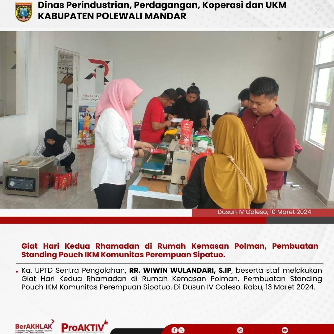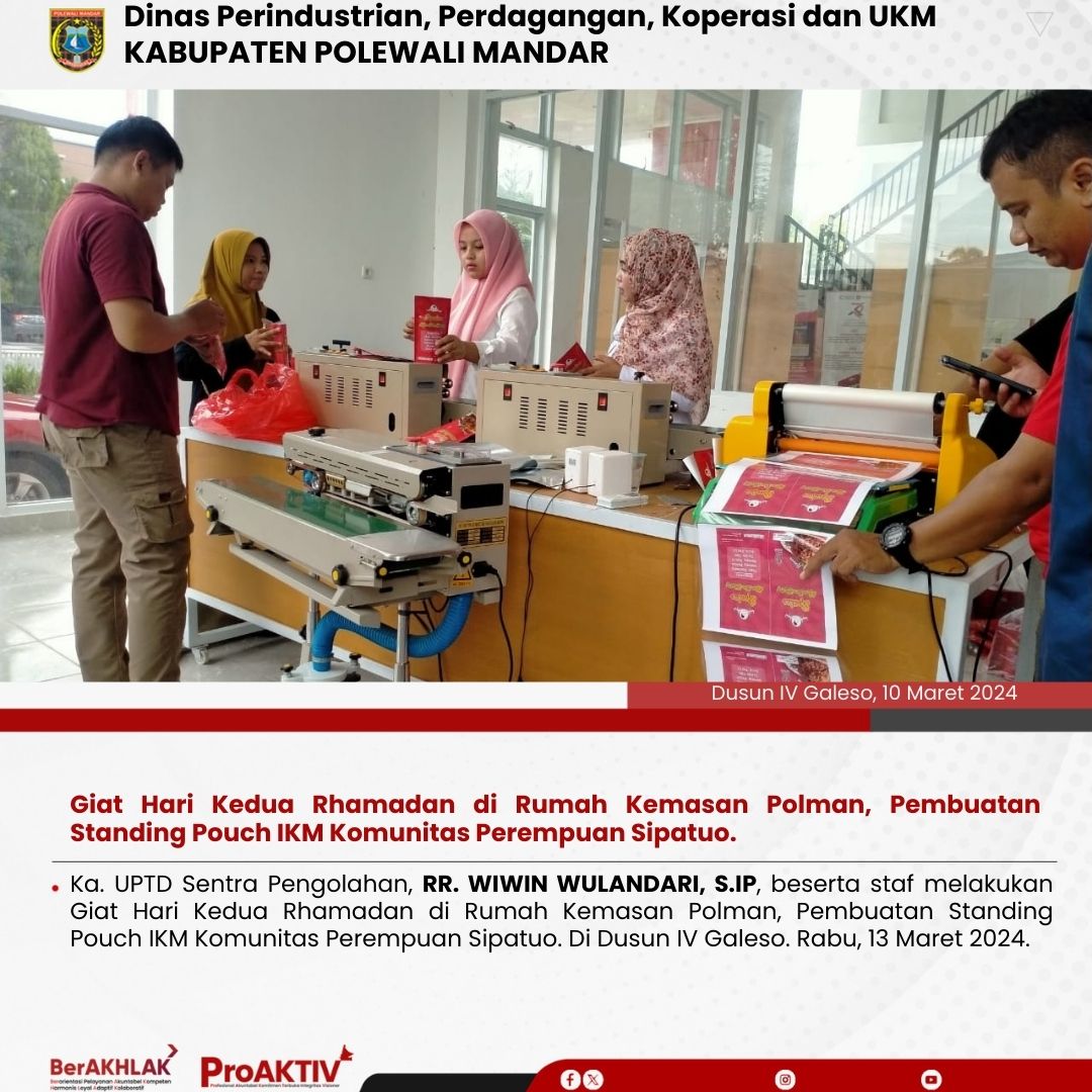 Giat hari kedua Rhamadan Pembuatan Standing Pouch IKM Komunitas Perempuan Sipatuo