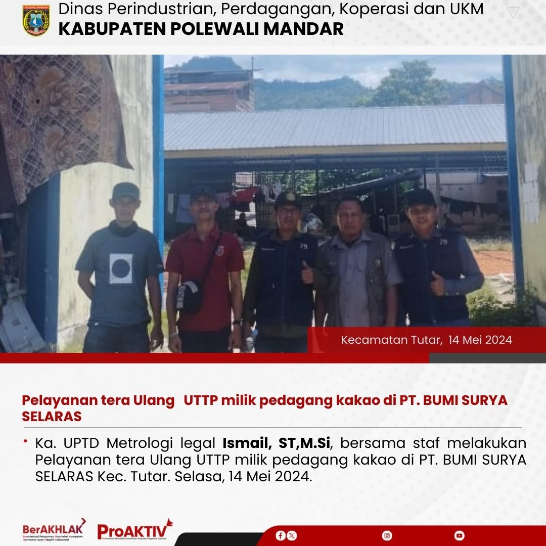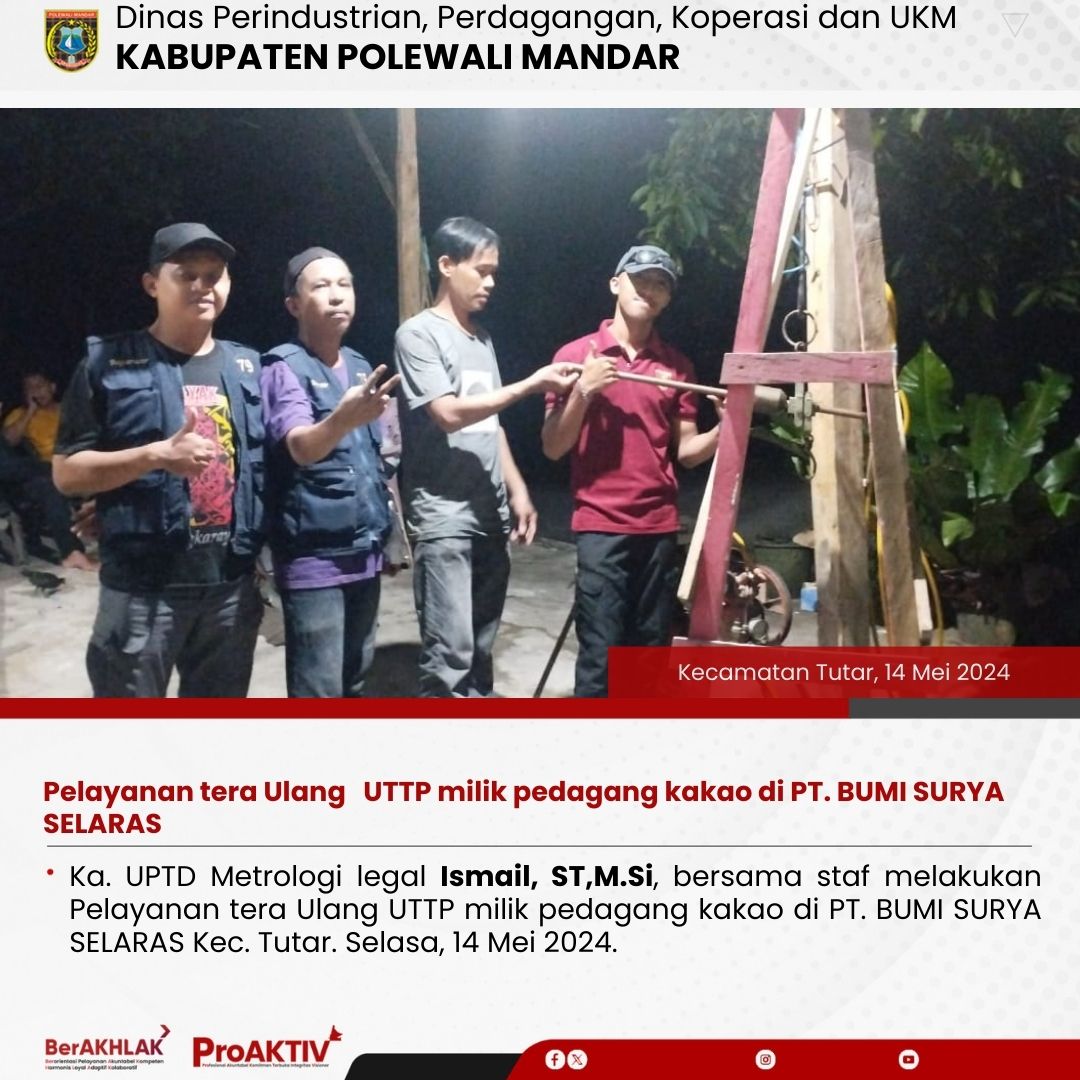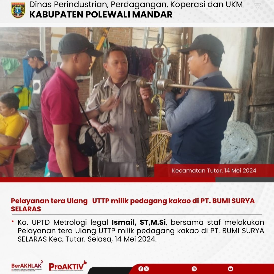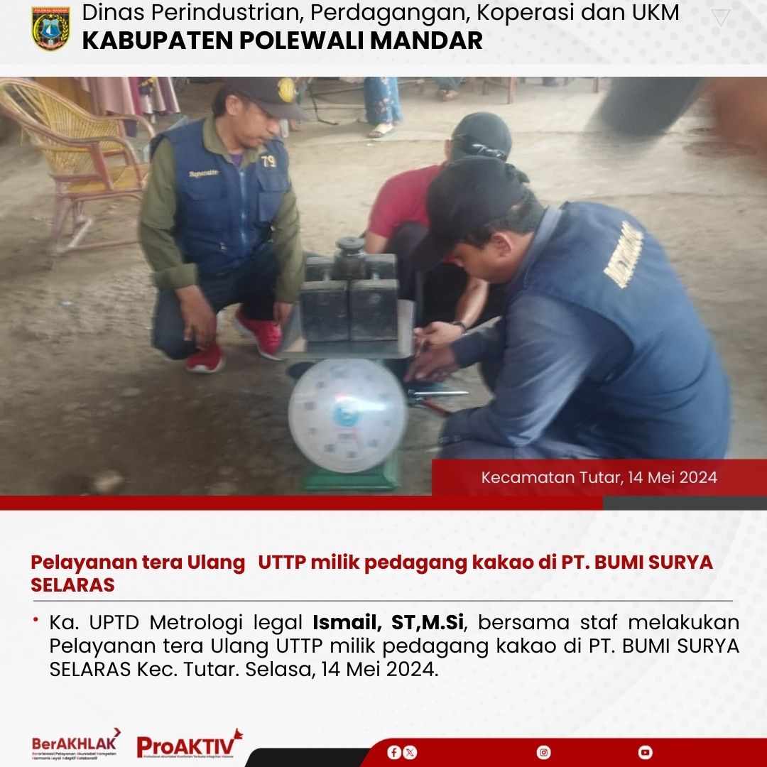 Pelayanan tera Ulang UTTP milik pedagang kakao di PT. BUMI SURYA SELARAS