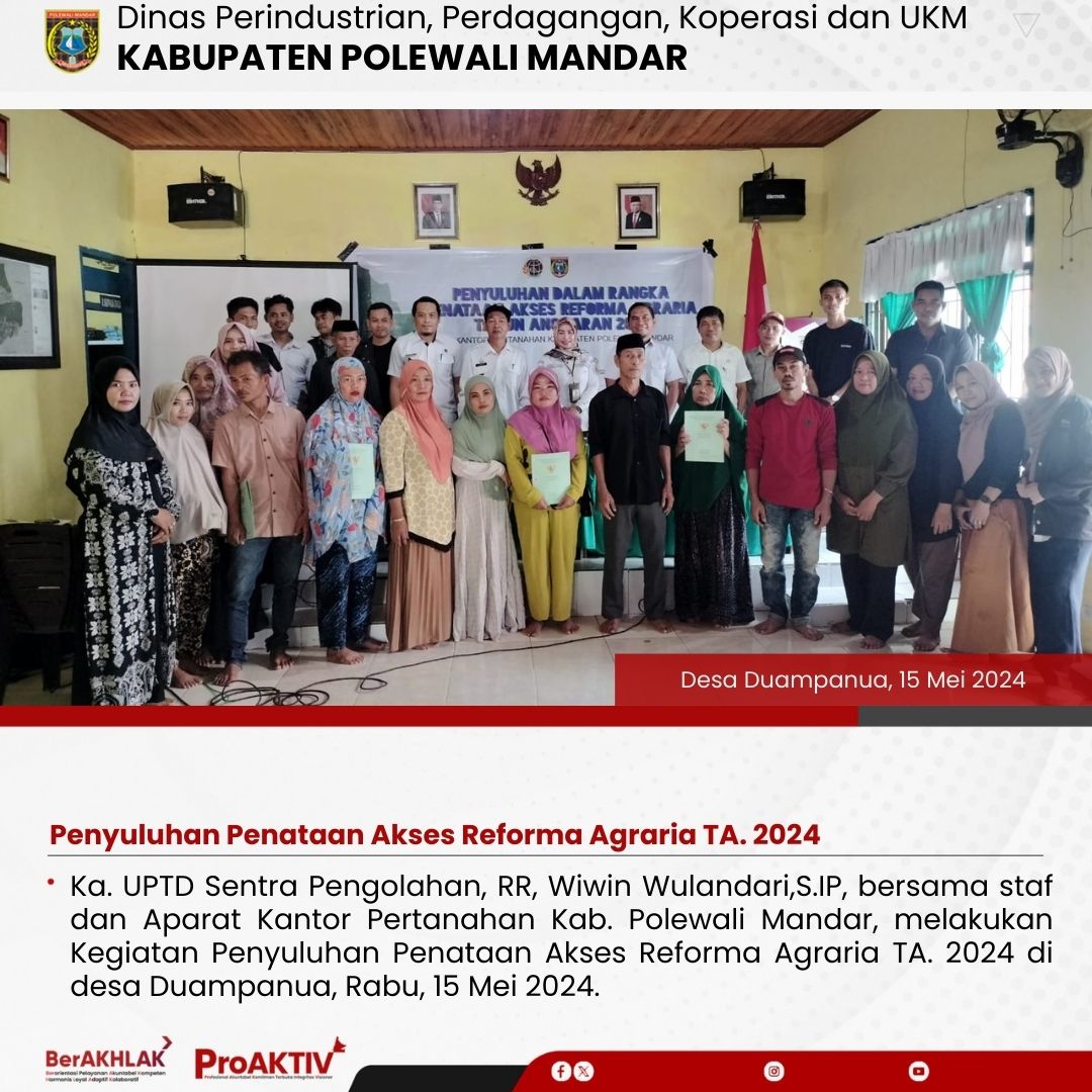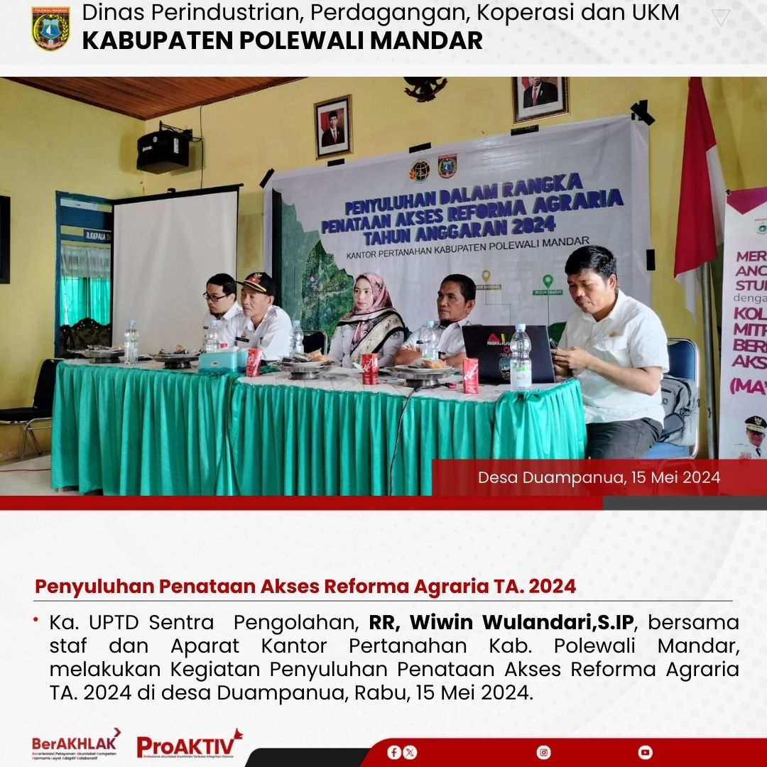 Kepala Dinas Perindustrian, Perdagangan, Koperasi dan UKM Kabupaten Polewali Mandar, Andi Chandra Sigit, ST., M.A.P beserta Kepala Bidang Koperasi, Nabil Wijdan Al Hamdani, S.STP. M.Si menghadiri undangan Rapat Konsolidasi Koperasi Desa Merah Putih yang berlangsung di Hotel Maleo pada tanggal 6 hingga 8 November 2025. Kegiatan ini dilaksanakan dalam rangka memperkuat koordinasi dan sinergitas antar lembaga dalam pengembangan sektor koperasi dan usaha kecil menengah di daerah....