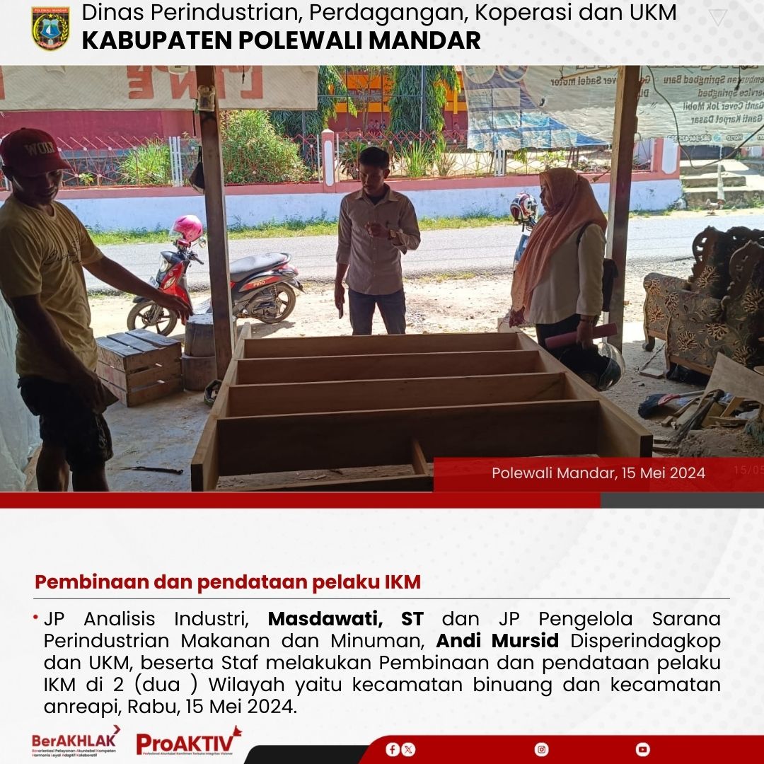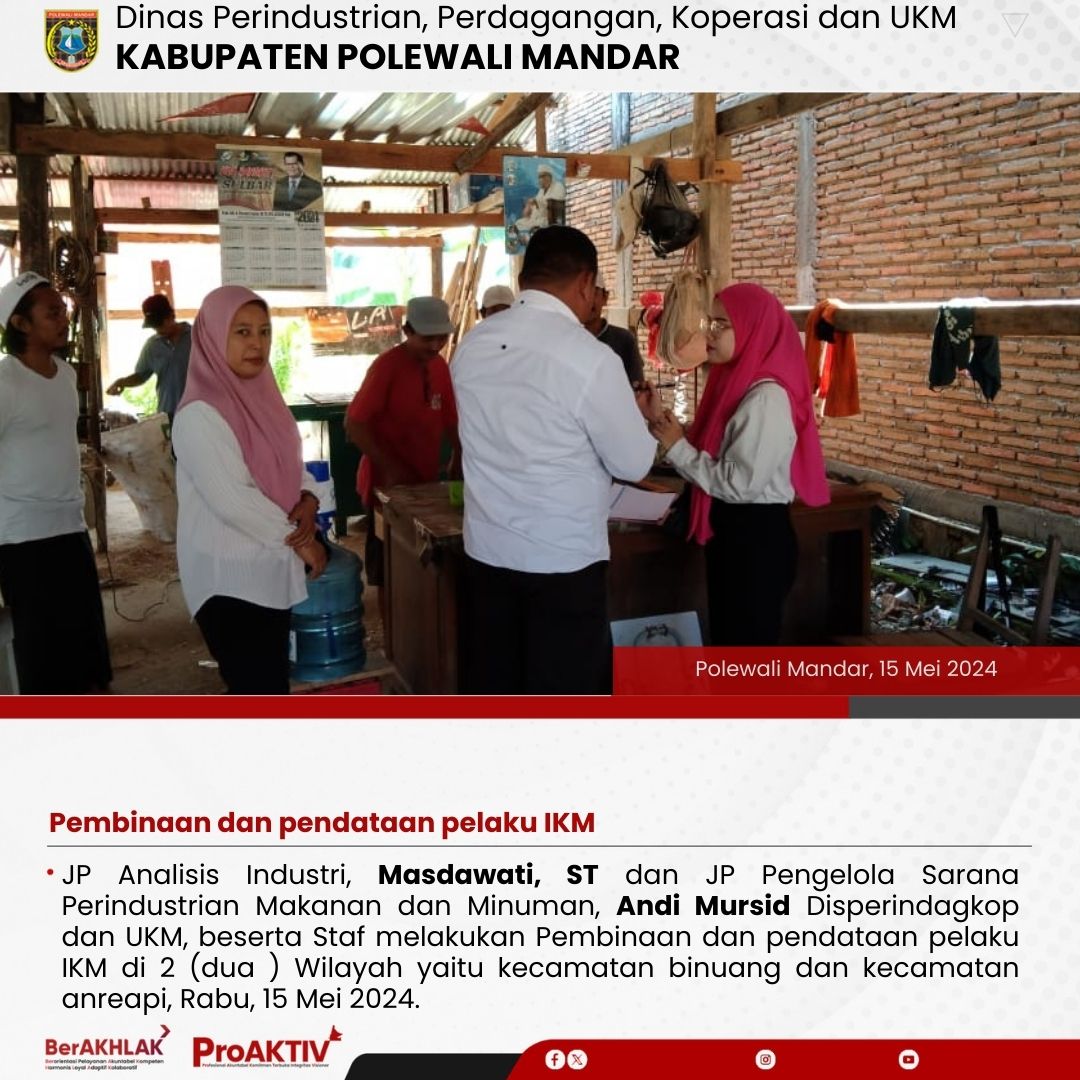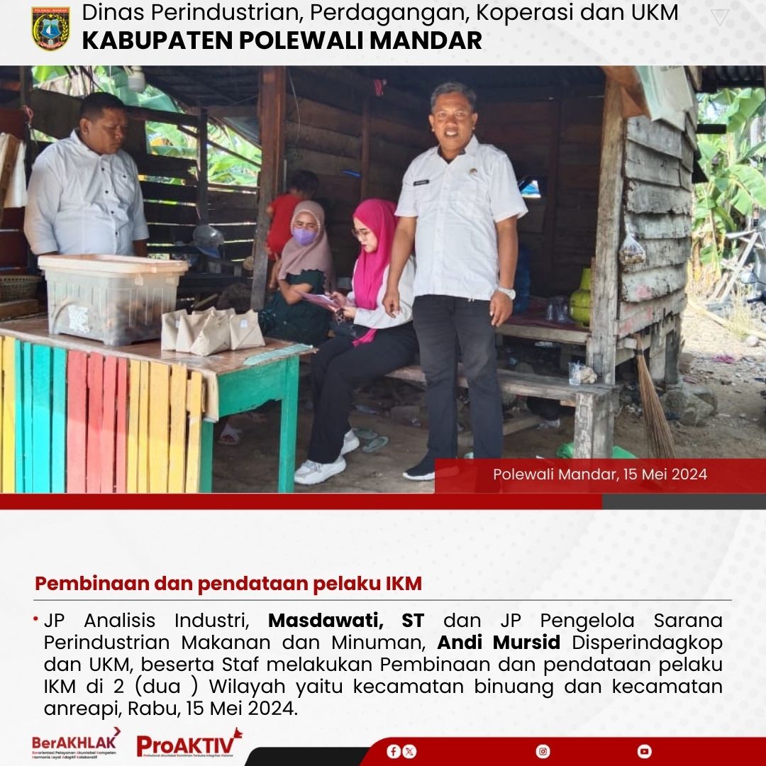 Pembinaan dan pendataan pelaku IKM di 2 (dua ) Wilayah yaitu kecamatan binuang dan kecamatan anreapi, Rabu 15 Mei 2024