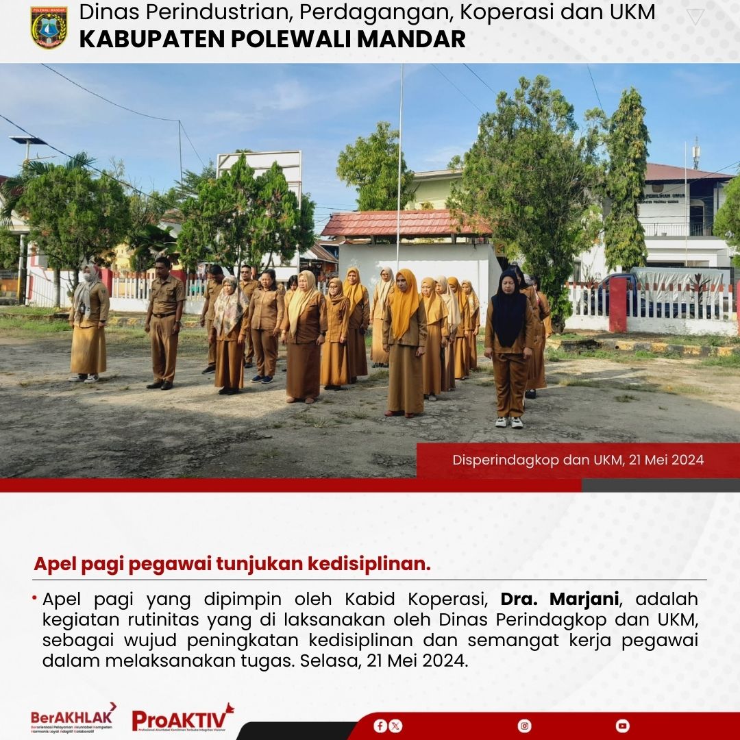 Dinas Perindustrian, Perdagangan, Koperasi dan UKM Kabupaten Polewali Mandar kembali menggelar kegiatan Jumat Bersih pada hari ini. Seluruh pejabat struktural, staf, hingga pegawai non-ASN terlibat aktif dalam menjaga kebersihan lingkungan kantor. Jumat, 07 November 2025...
