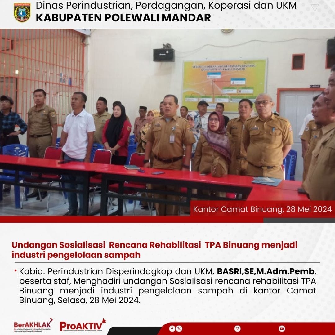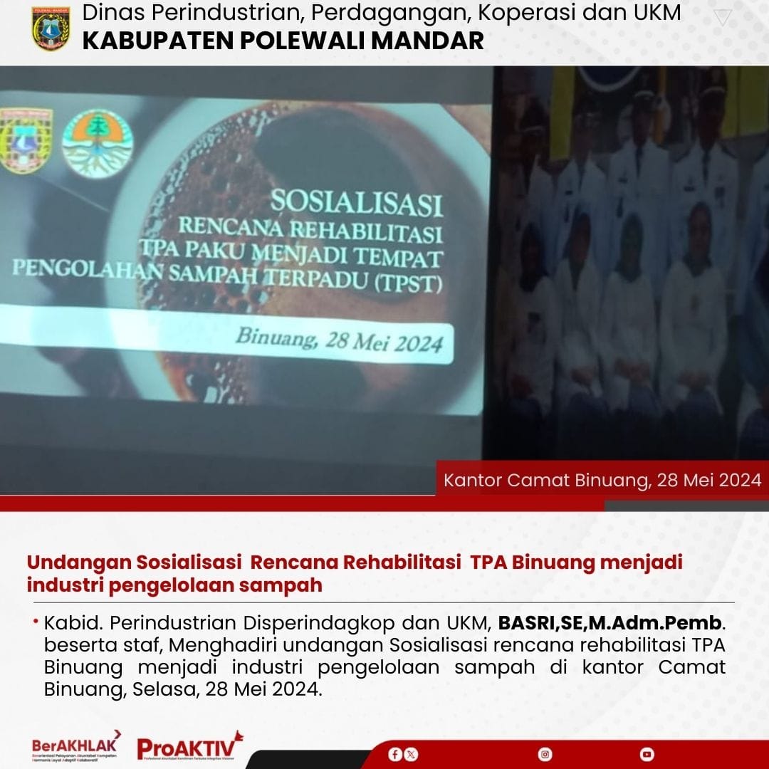Undangan Sosialisasi Rencana Rehabilitasi TPA Binuang menjadi industri pengelolaan sampah selasa, 28 Mei 2024