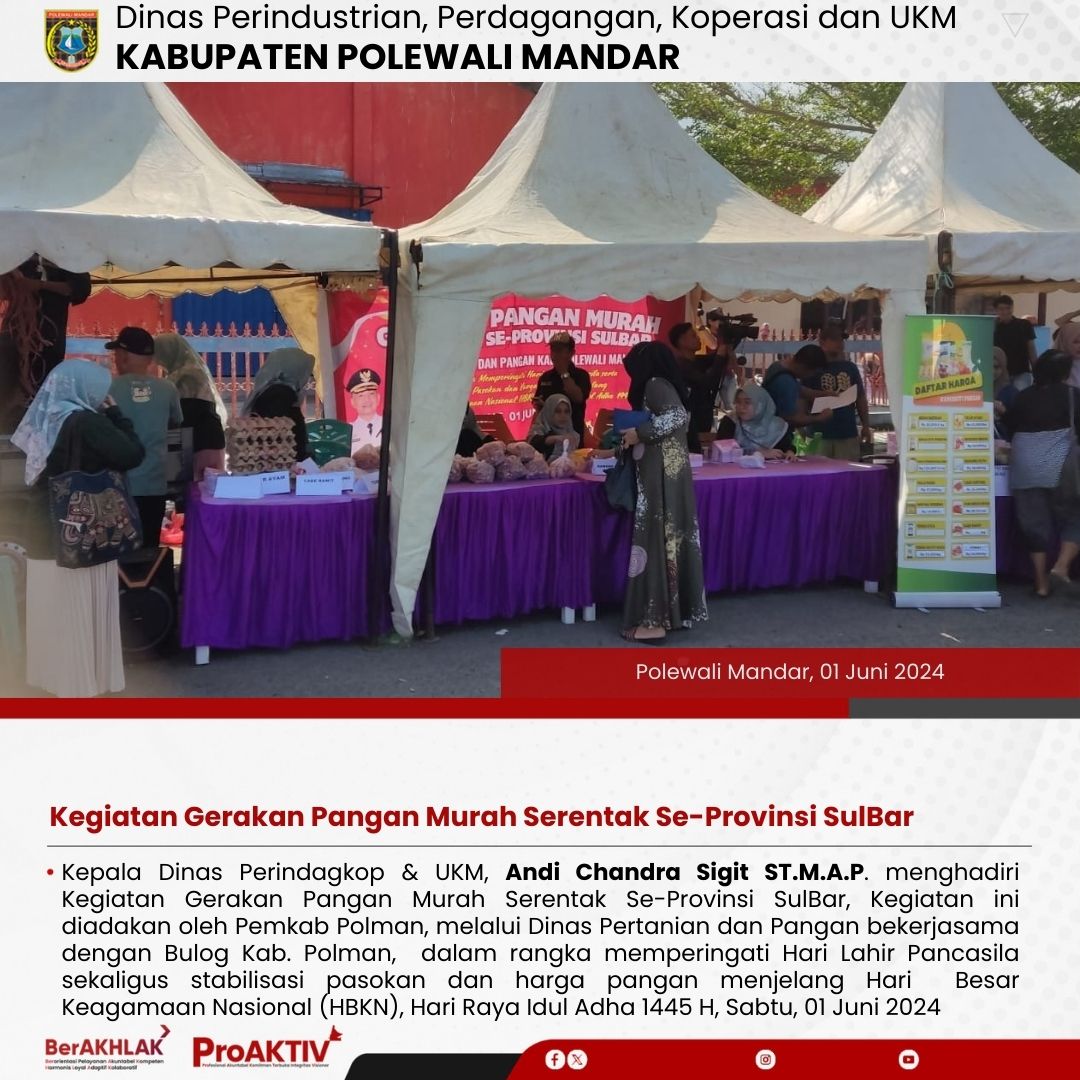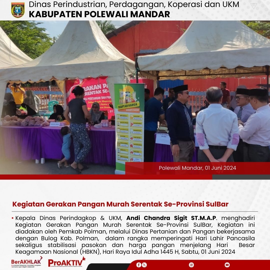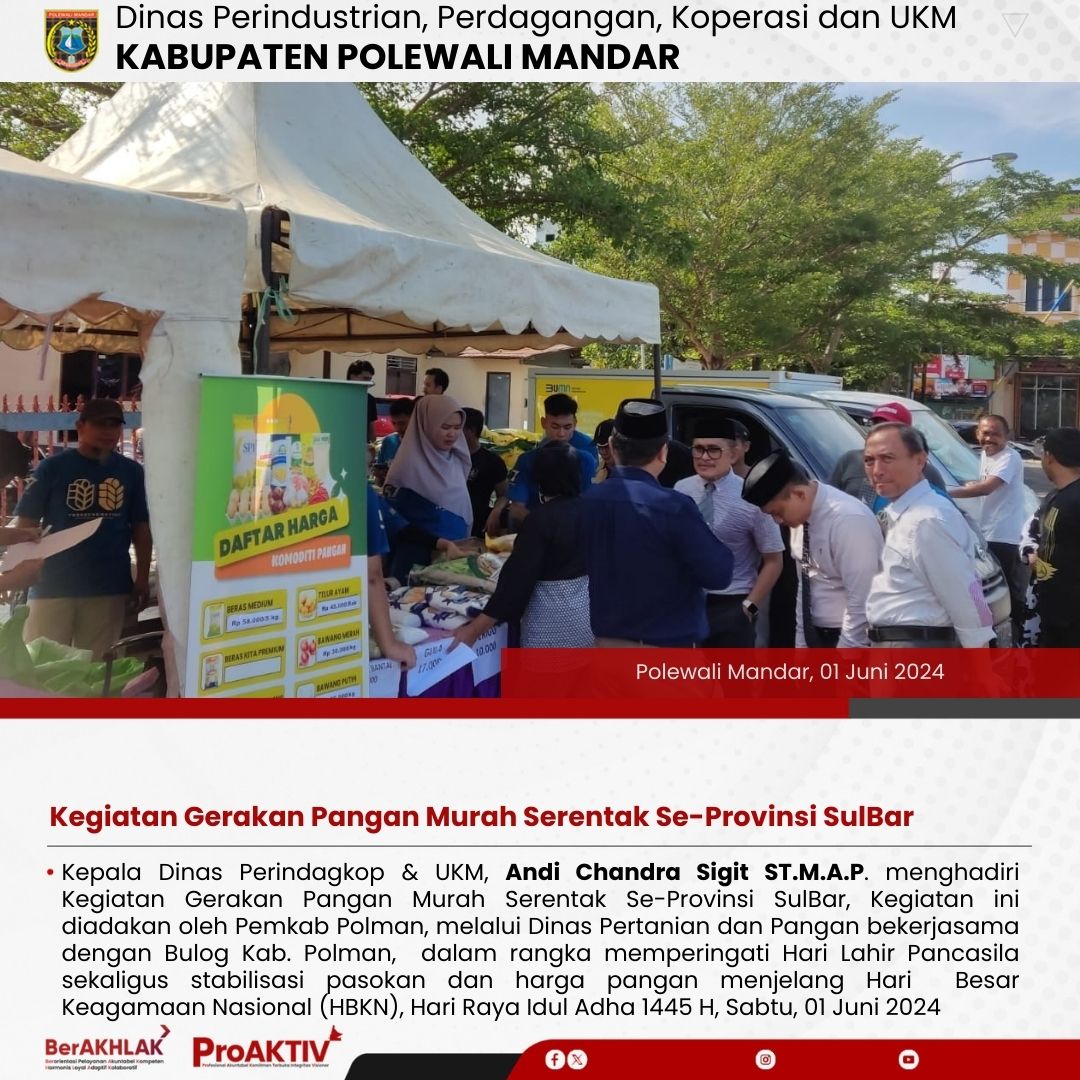 Kegiatan Gerakan Pangan Murah Serentak Se-Provinsi SulBar, Jumat, 31 Mei 2024
