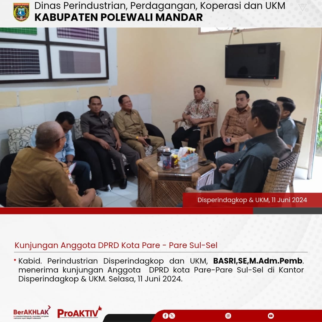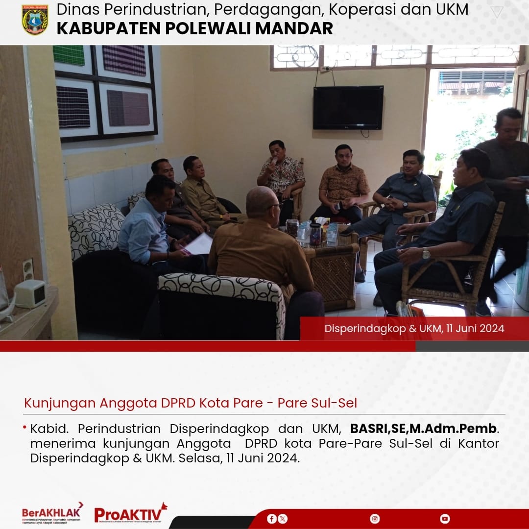 Kabid. Perindustrian Disperindagkop dan UKM, BASRI,SE,M.Adm.Pemb. menerima kunjungan Anggota DPRD kota Pare-Pare Sul-Sel di Kantor Disperindagkop & UKM. Selasa, 11 Juni 2024.
