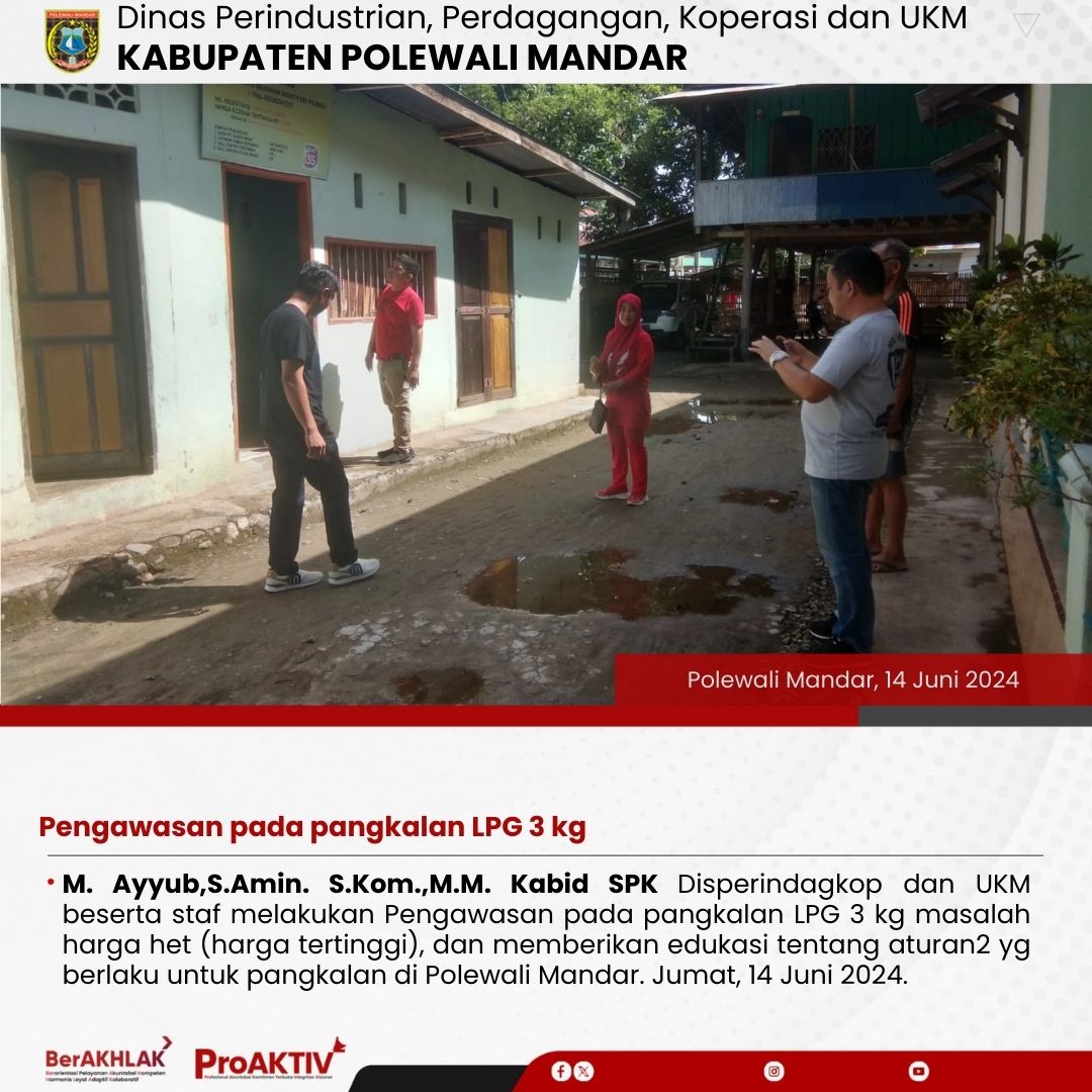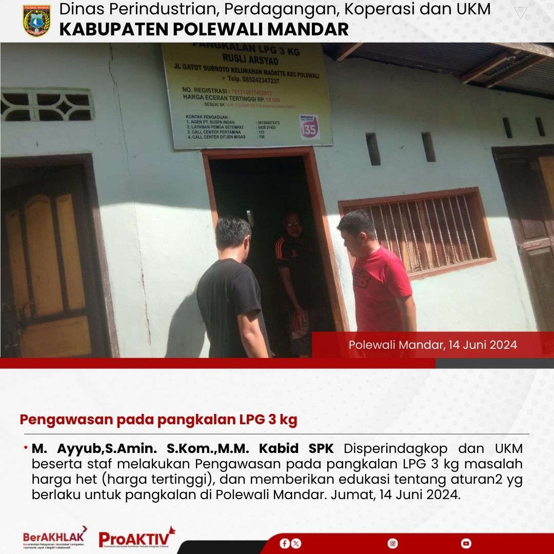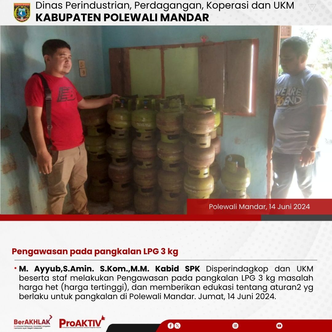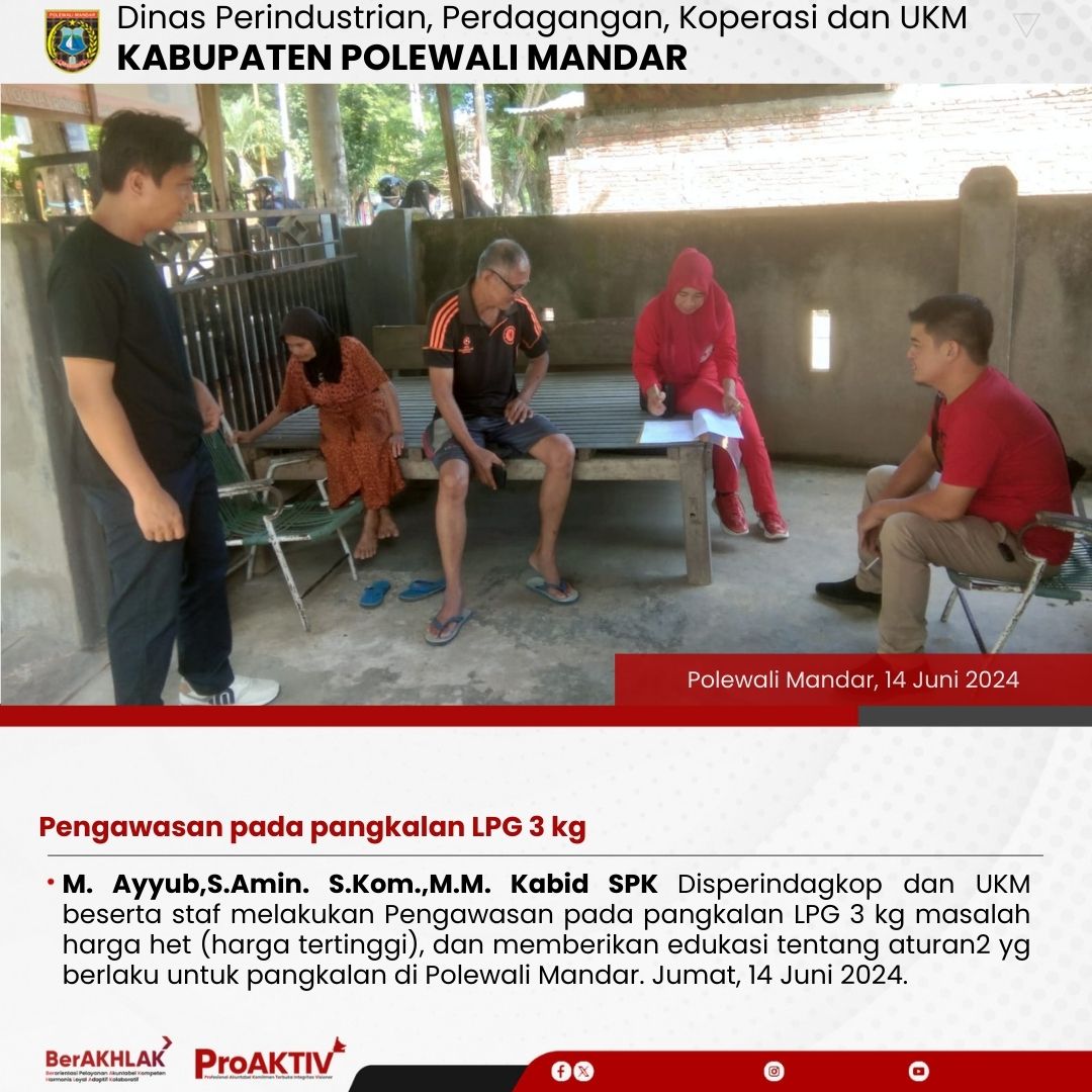 M. Ayyub,S.Amin. S.Kom.,M.M. Kabid SPK Disperindagkop dan UKM beserta staf melakukan Pengawasan pada pangkalan LPG 3 kg masalah harga het (harga tertinggi), dan memberikan edukasi tentang aturan2 yg berlaku untuk pangkalan di Polewali Mandar. Jumat, 14 Juni 2024.