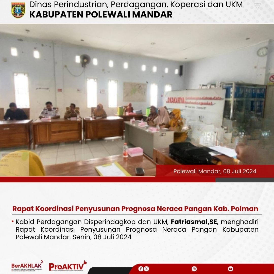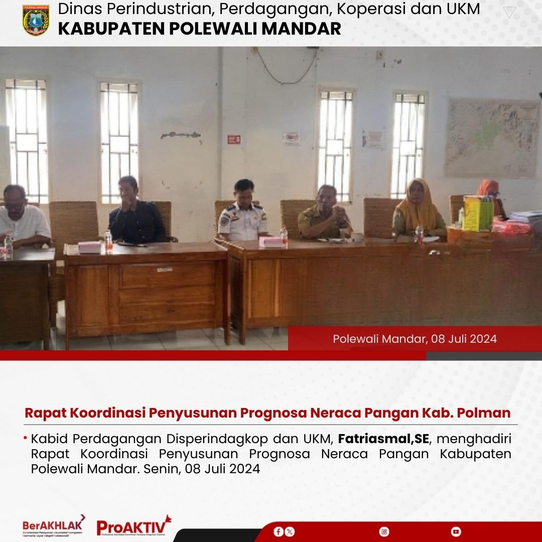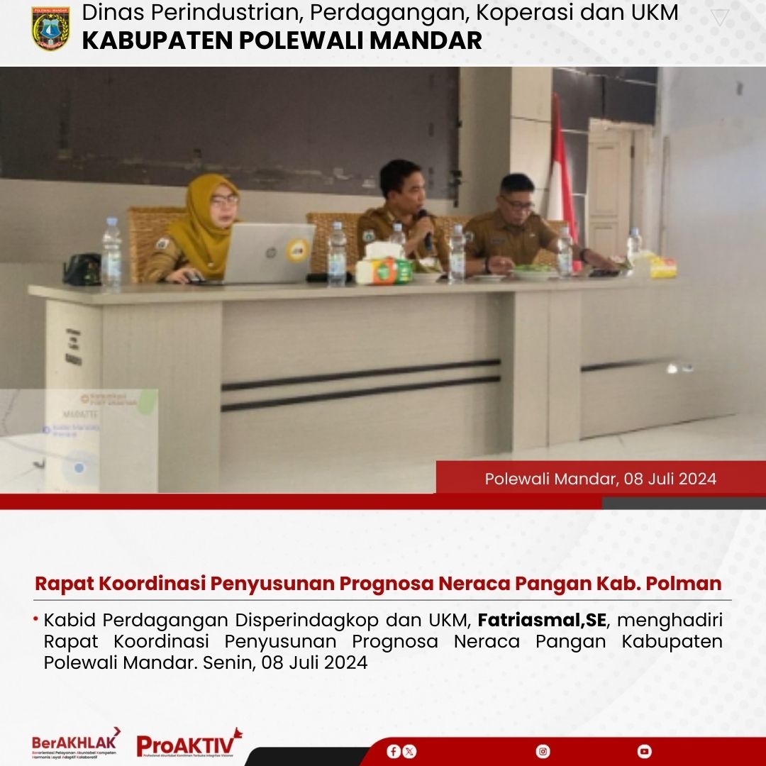 Kabid Perdagangan Disperindagkop dan UKM, Fatriasmal,SE, menghadiri Rapat Koordinasi Penyusunan Prognosa Neraca Pangan Kabupaten Polewali Mandar. Senin, 08 Juli 2024