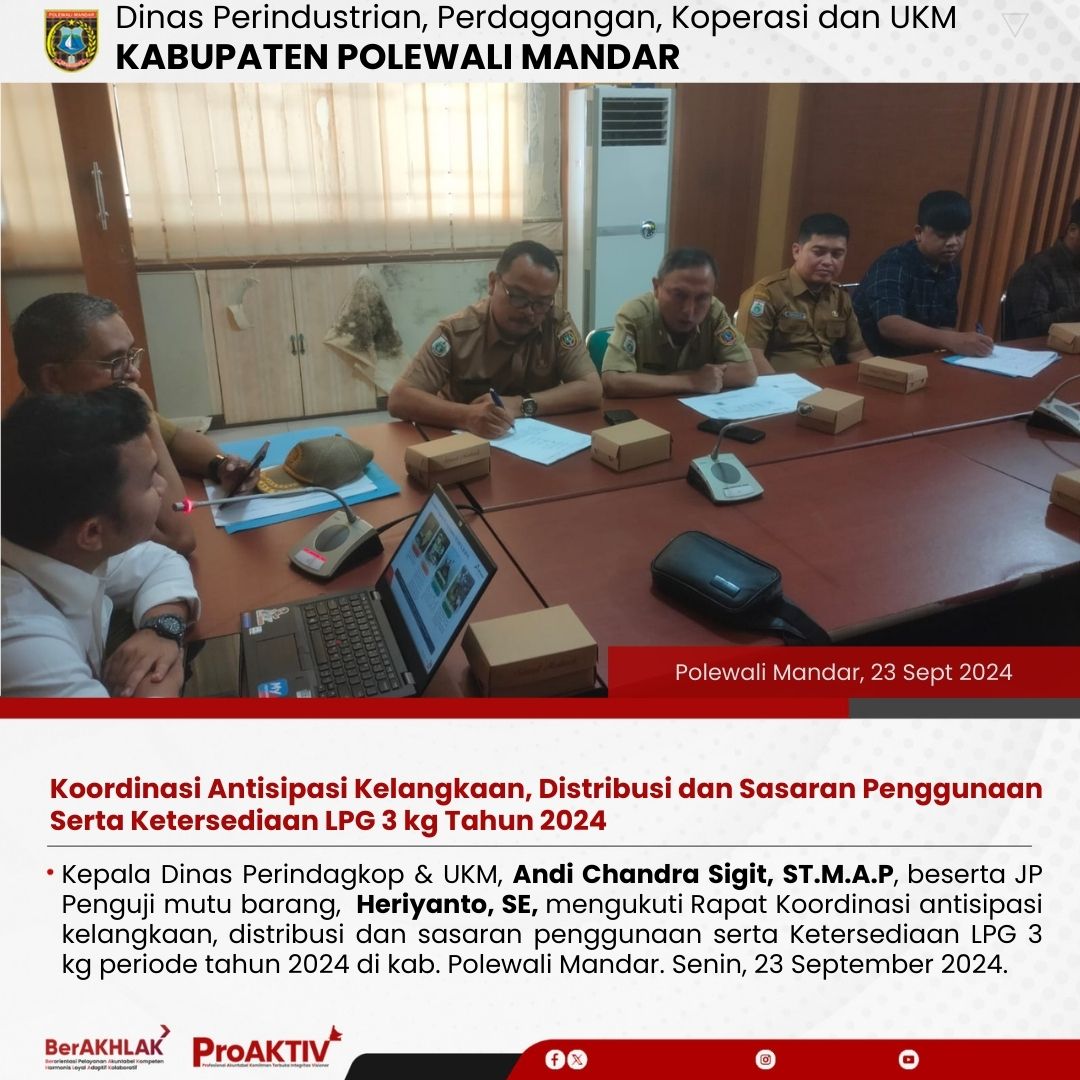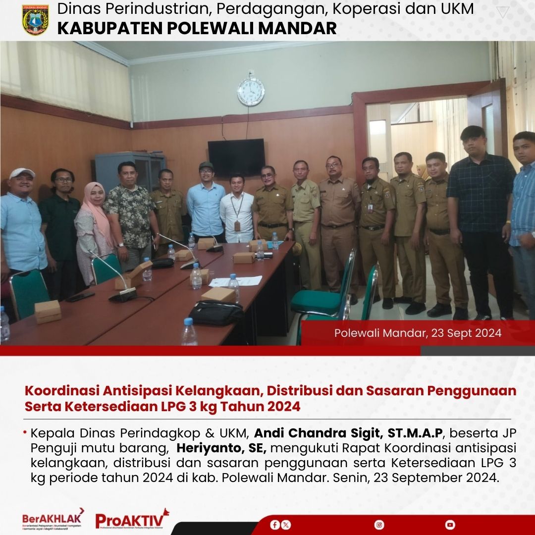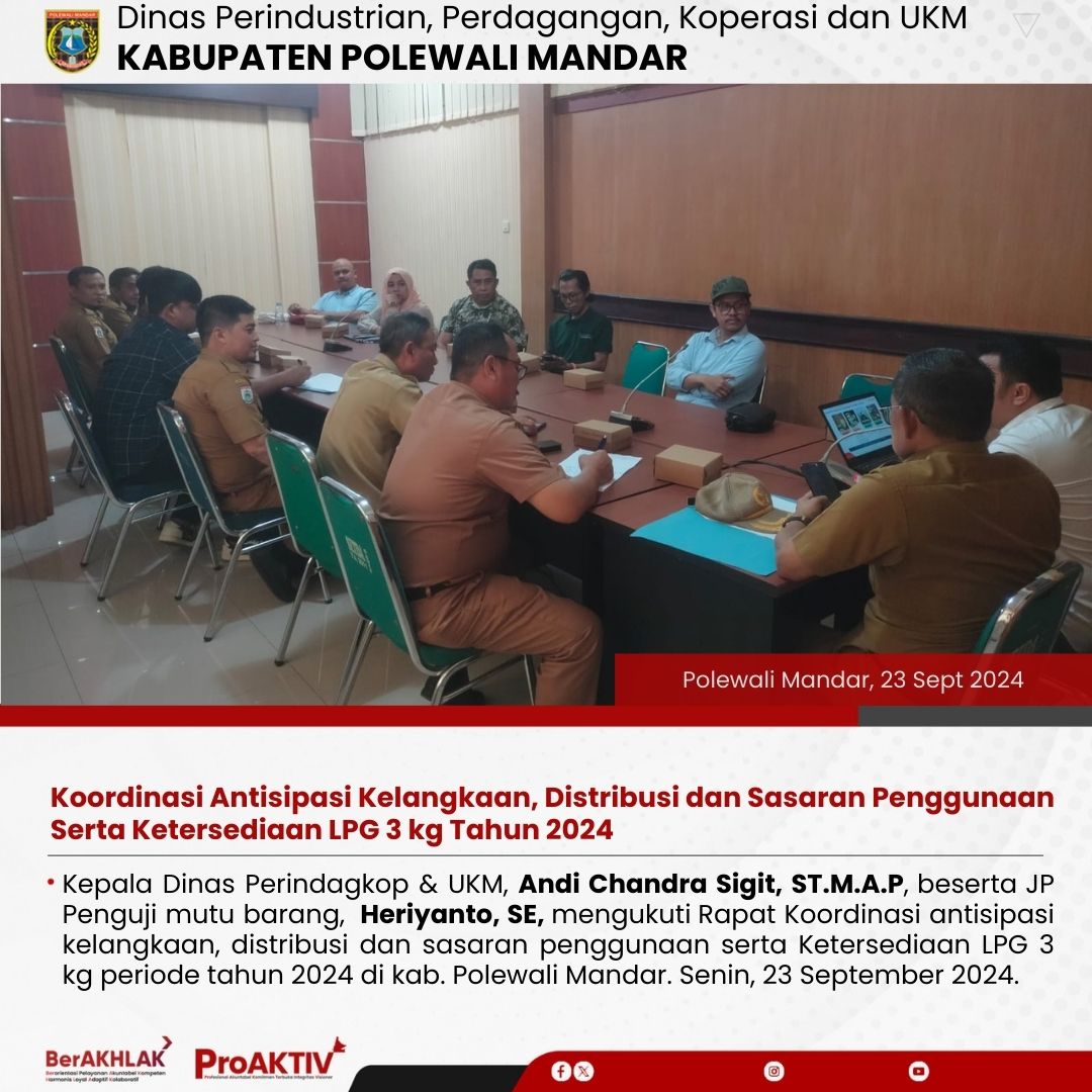 kuti Rapat Koordinasi antisipasi kelangkaan, distribusi dan sasaran penggunaan serta Ketersediaan LPG 3 kg periode tahun 2024 di kab. Polewali Mandar. Senin, 23 September 2024.