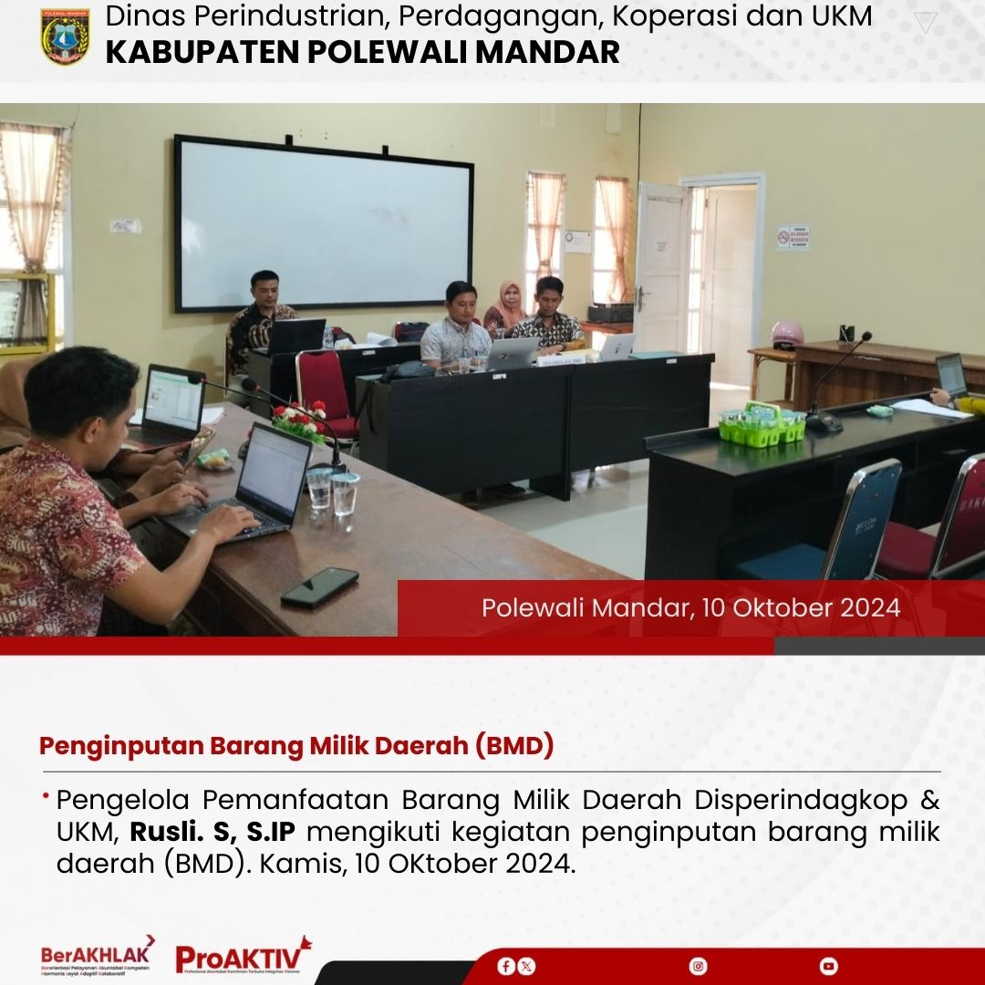 Pengelola Pemanfaatan Barang Milik Daerah Disperindagkop & UKM, Rusli. S, S.IP mengikuti kegiatan penginputan barang milik daerah (BMD). Kamis, 10 OKtober 2024.