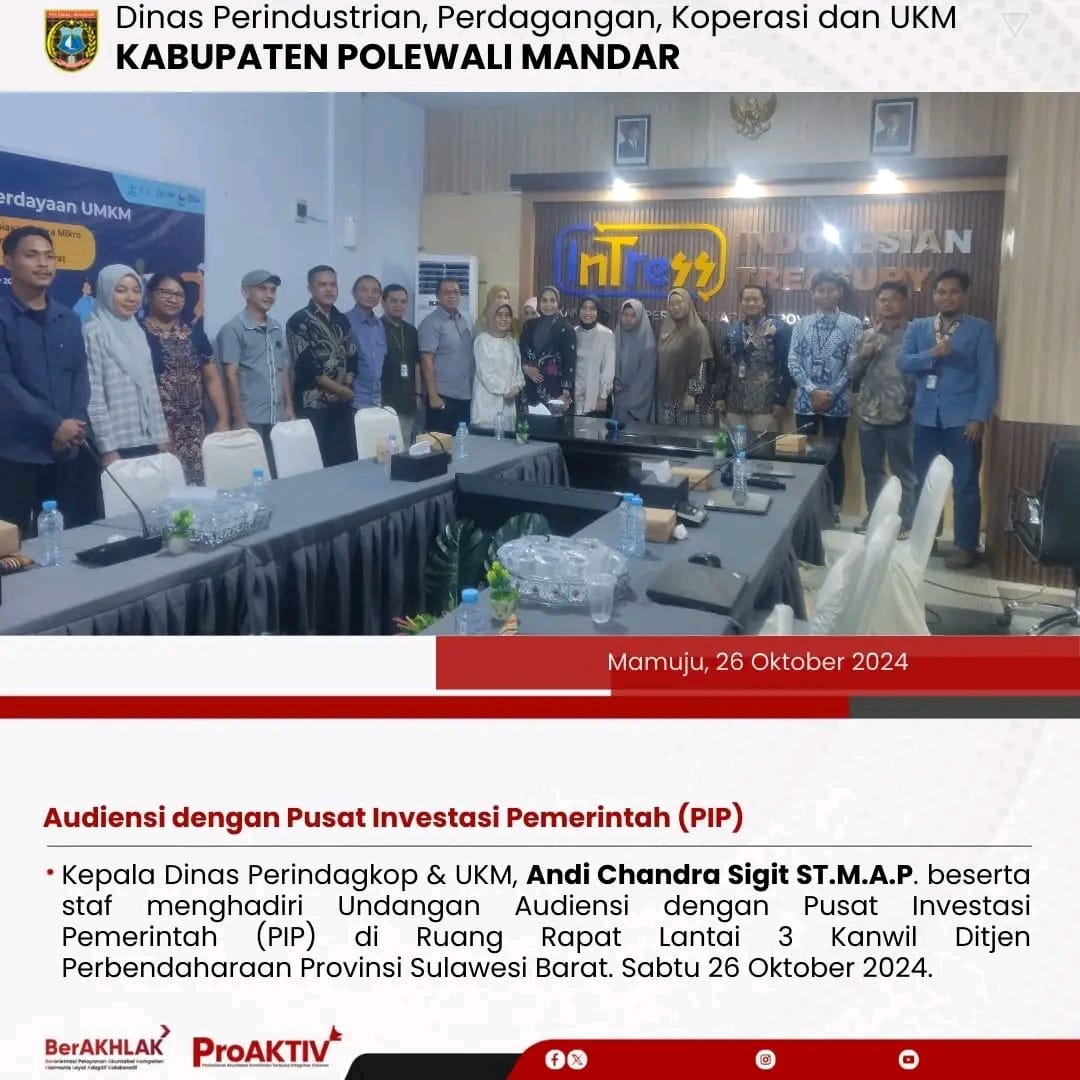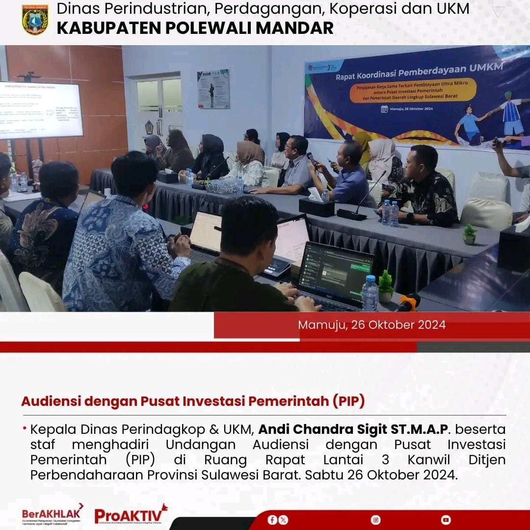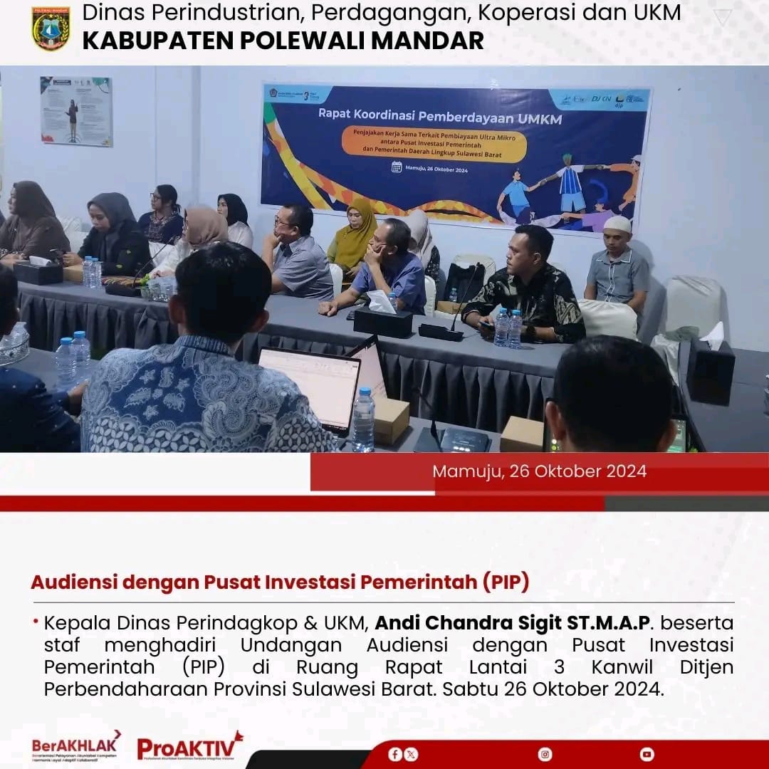 Kepala Dinas Perindustrian, Perdagangan, Koperasi dan UKM Kabupaten Polewali Mandar, Andi Chandra Sigit, ST., M.A.P beserta Kepala Bidang Koperasi, Nabil Wijdan Al Hamdani, S.STP. M.Si menghadiri undangan Rapat Konsolidasi Koperasi Desa Merah Putih yang berlangsung di Hotel Maleo pada tanggal 6 hingga 8 November 2025. Kegiatan ini dilaksanakan dalam rangka memperkuat koordinasi dan sinergitas antar lembaga dalam pengembangan sektor koperasi dan usaha kecil menengah di daerah....