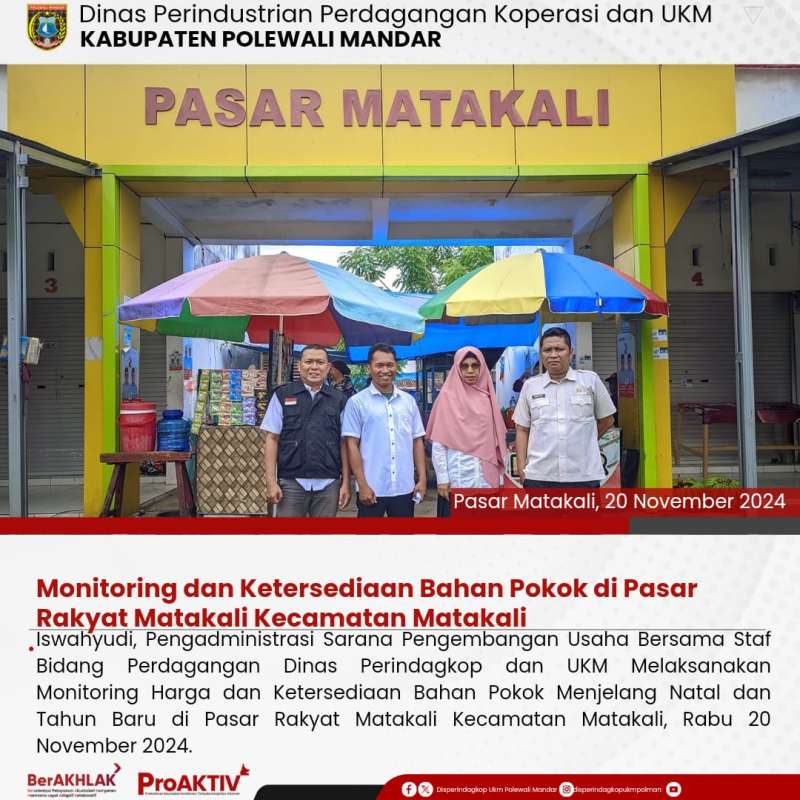 Iswahyudi pengadministrasian sarana pengembangan usaha bersama staf bidang perdangangan dinas Disperindagkop & UKM melaksanakan monitoring harga dan ketersediaan bahan pokok menjelang natal dan tahun baru di pasar matakali Kab. Polman Rabu, 20 Des 2024