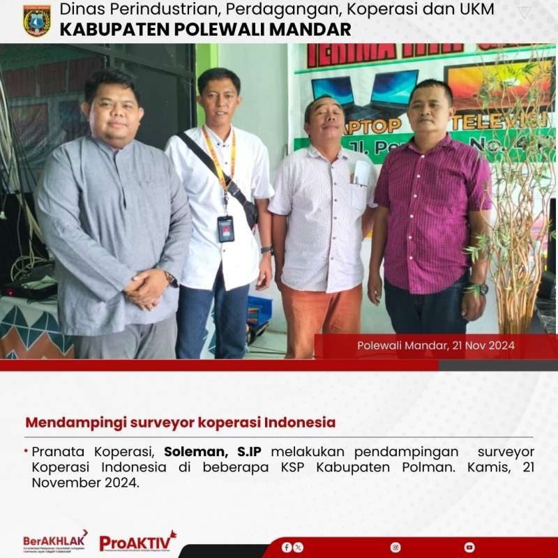 Pranata Koperasi, Soleman, S.IP melakukan pendampingan surveyor Koperasi Indonesia di beberapa KSP Kabupaten Polman. Kamis, 21 November 2024.