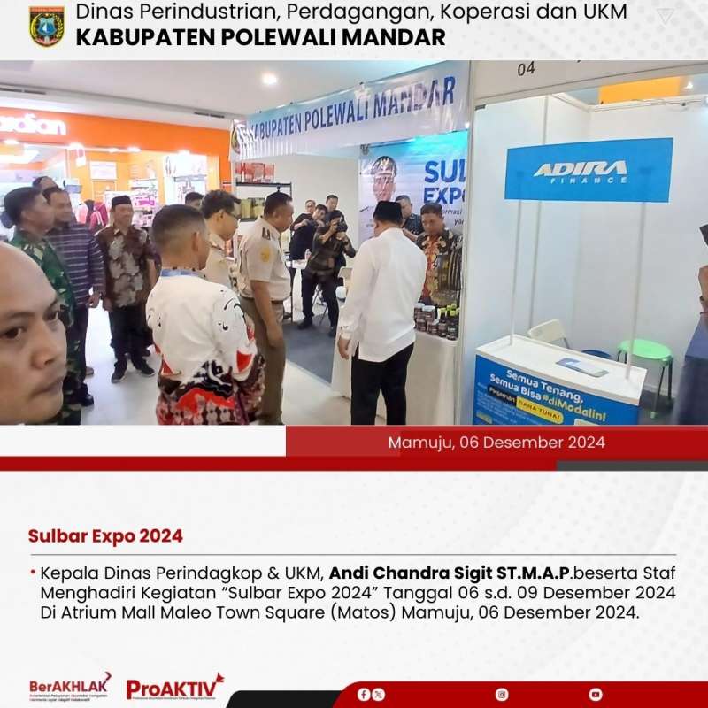 Kepala Dinas Perindagkop & UKM, Andi Chandra Sigit ST.M.A.P.beserta Staf Menghadiri Kegiatan “Sulbar Expo 2024” Tanggal 06 s.d. 09 Desember 2024 Di Atrium Mall Maleo Town Square (Matos) Mamuju, 06 Desember 2024.