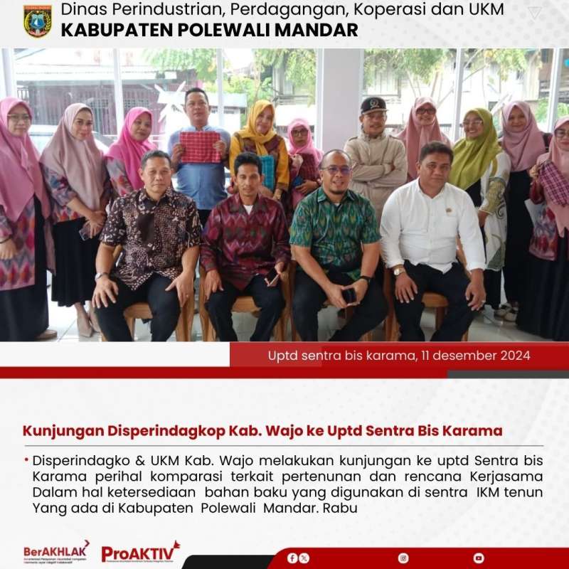 Disperindagko & UKM Kab. Wajo melakukan kunjungan ke uptd Sentra bis Karama perihal komparasi terkait pertenunan dan rencana Kerjasama Dalam hal ketersediaan bahan baku yang digunakan di sentra IKM tenun Yang ada di Kabupaten Polewali Mandar. Rabu 11 Des 2024