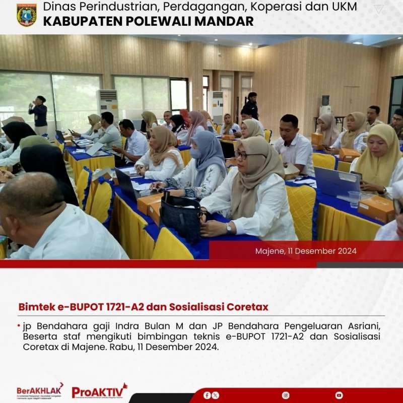 i, Beserta staf mengikuti bimbingan teknis e-BUPOT 1721-A2 dan Sosialisasi Coretax di Majene. Rabu, 11 Desember 2024.