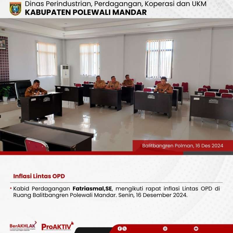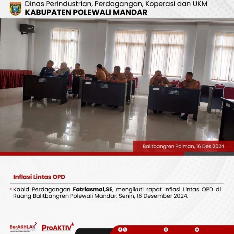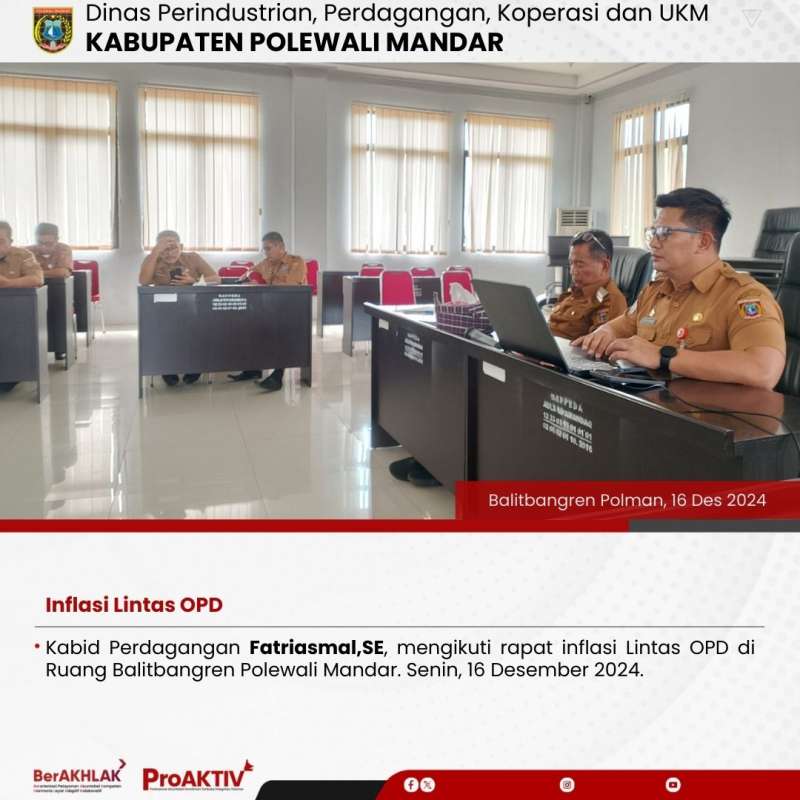 Kabid Perdagangan Fatriasmal,SE, mengikuti rapat inflasi Lintas OPD di Ruang Balitbangren Polewali Mandar. Senin, 16 Desember 2024.