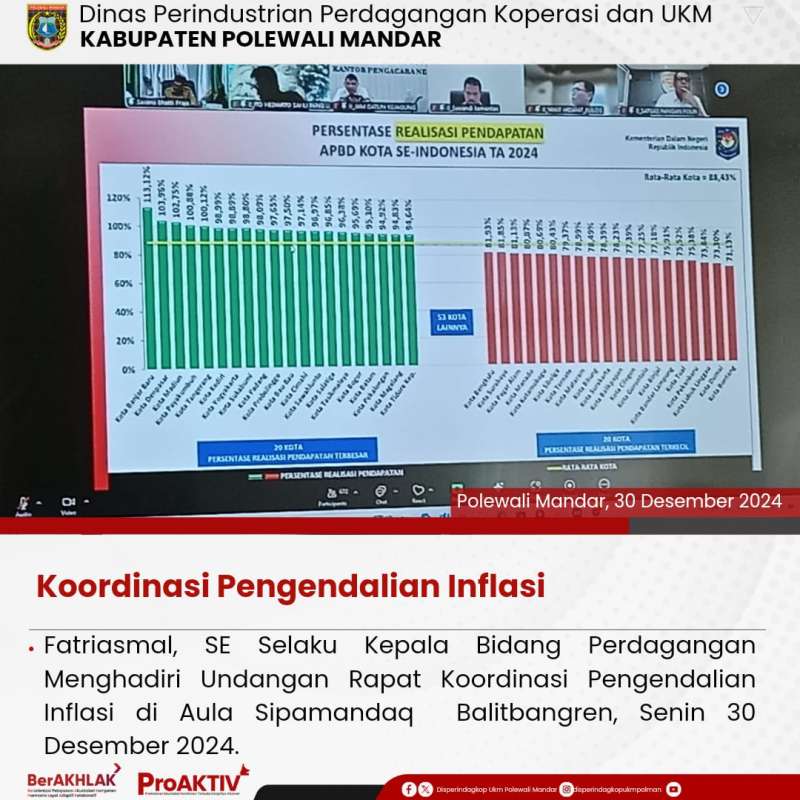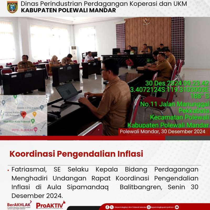 Fatriasmal, SE, selaku Kepala Bidang Perdagangan Disperindagkop dan UKM, menghadiri undangan rapat Koordinasi Pengendalian Inflasi di Aula Sipamandaq Balitbangren pada hari senin, 30 Desember 2024
