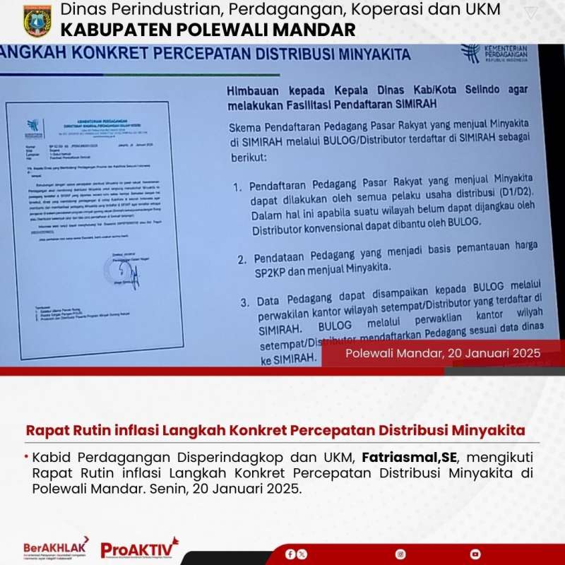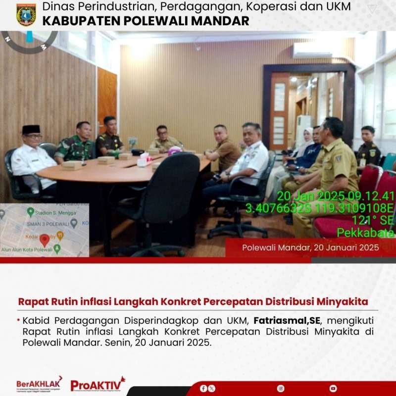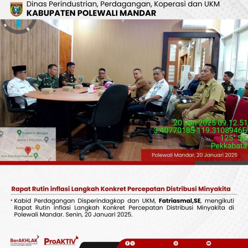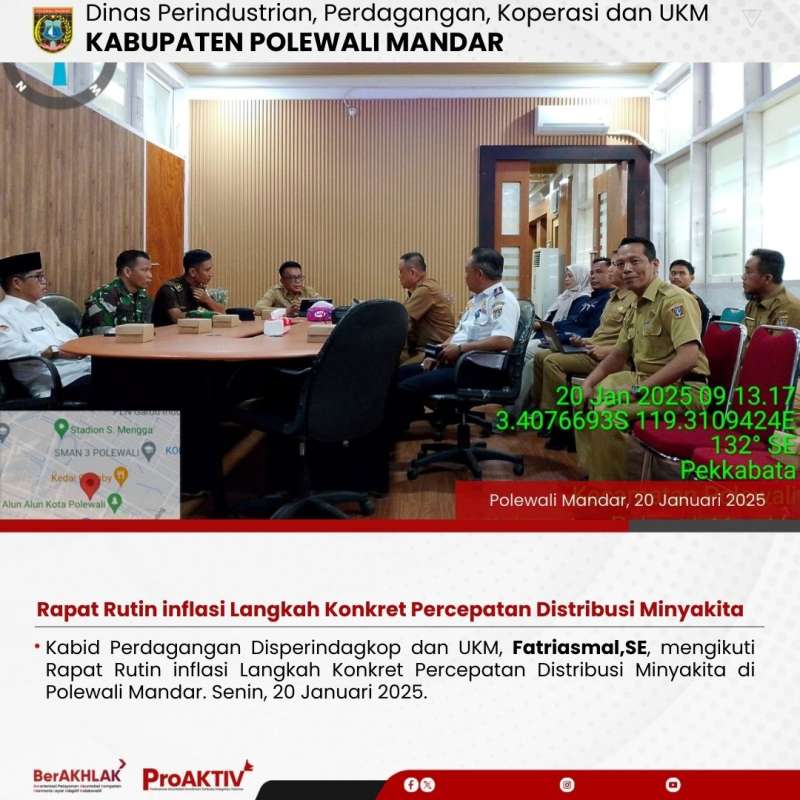 Kabid Perdagangan Disperindagkop dan UKM, Fatriasmal,SE, mengikuti Rapat Rutin inflasi Langkah Konkret Percepatan Distribusi Minyakita di Polewali Mandar. Senin, 20 Januari 2025.