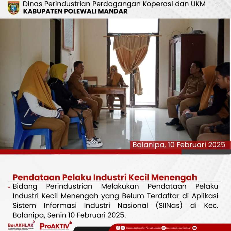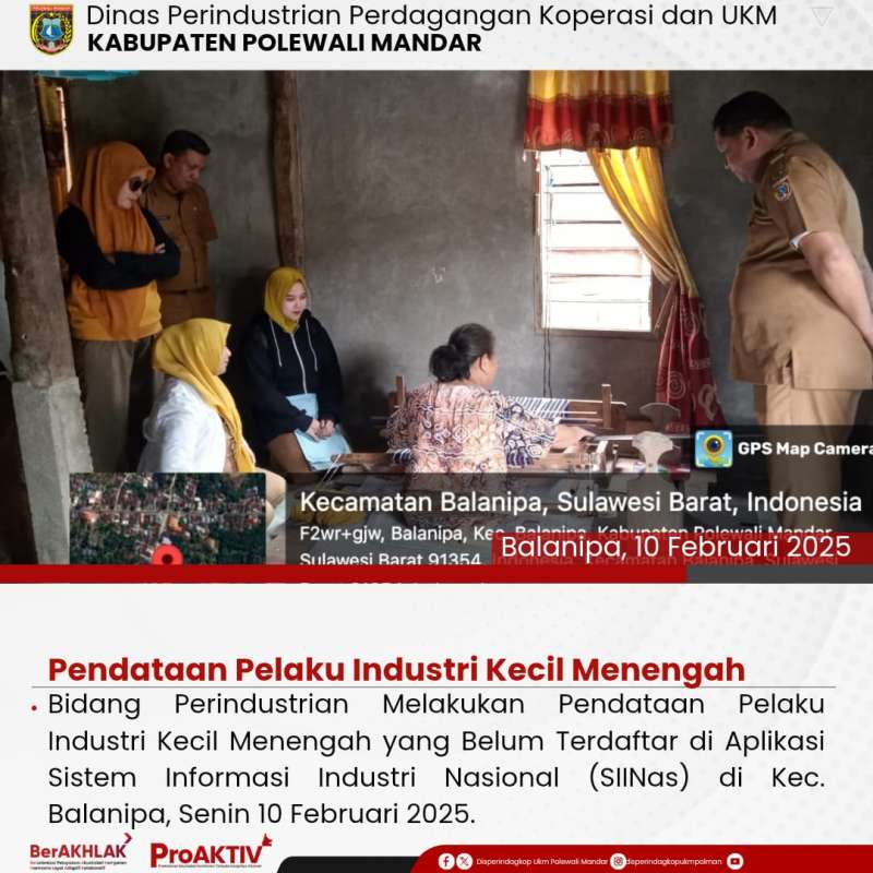 Bidang Perindustrian melakukan pendataan pelaku Industri Kecil Menengah yang belum terdaftar pada Aplikasi Sistem Informasi Industri Nasional (SIINas) di Kec. Balanipa, senin 10 Februari 2025