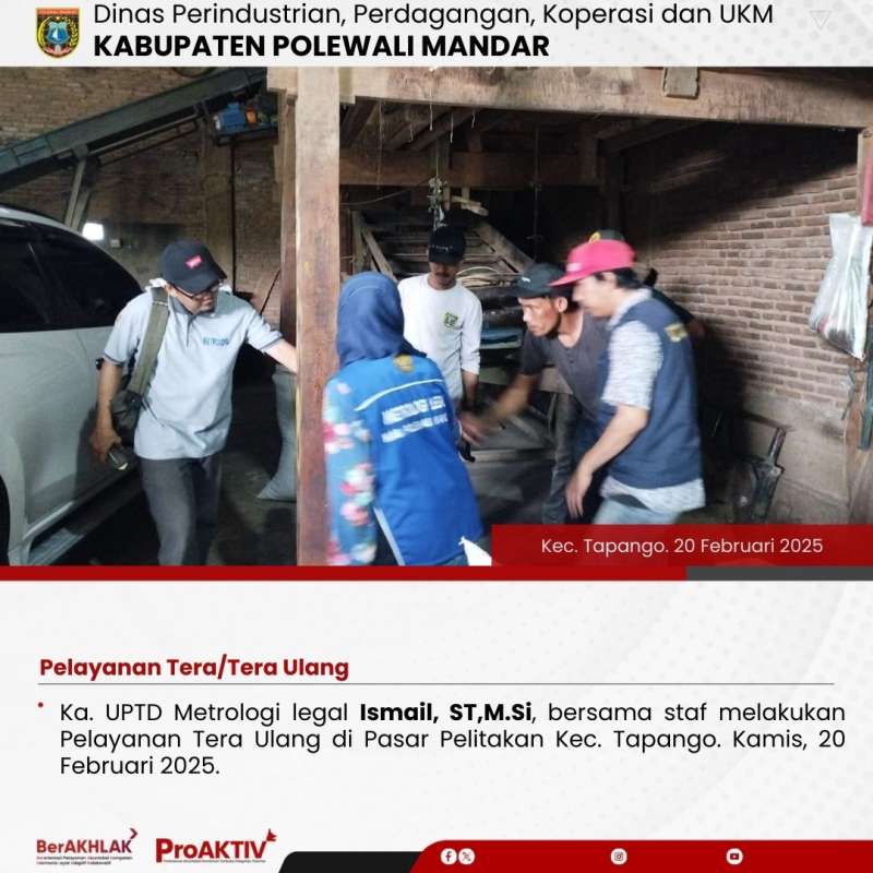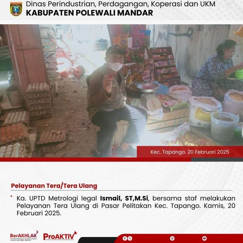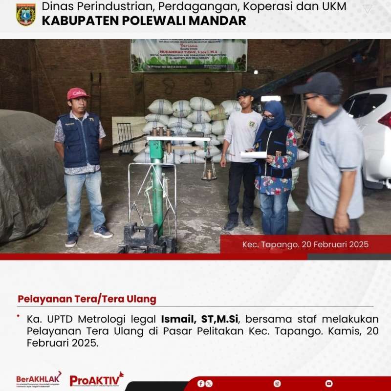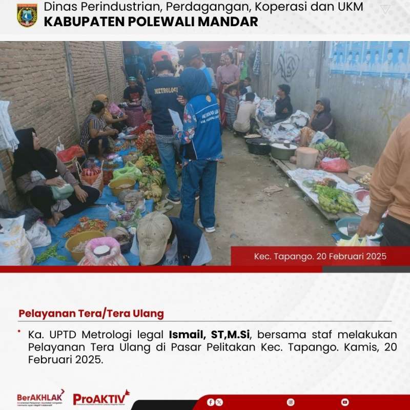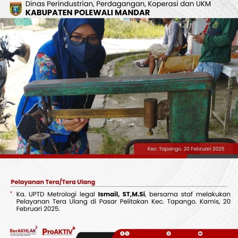 Pelayanan Tera Ulang di Pasar Pelitakan Kec. Tapango Kamis, 20 Februari 2025