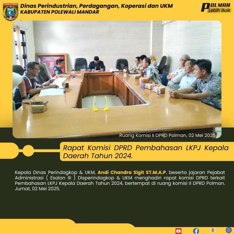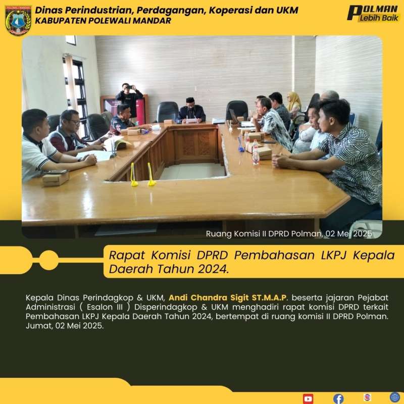 Kepala Dinas Perindagkop & UKM, Andi Chandra Sigit ST.M.A.P. beserta jajaran Pejabat Administrasi ( Esalon III ) Disperindagkop & UKM menghadiri rapat komisi DPRD terkait Pembahasan LKPJ Kepala Daerah Tahun 2024, bertempat di ruang komisi II DPRD Polman. Jumat, 02 Mei 2025.
