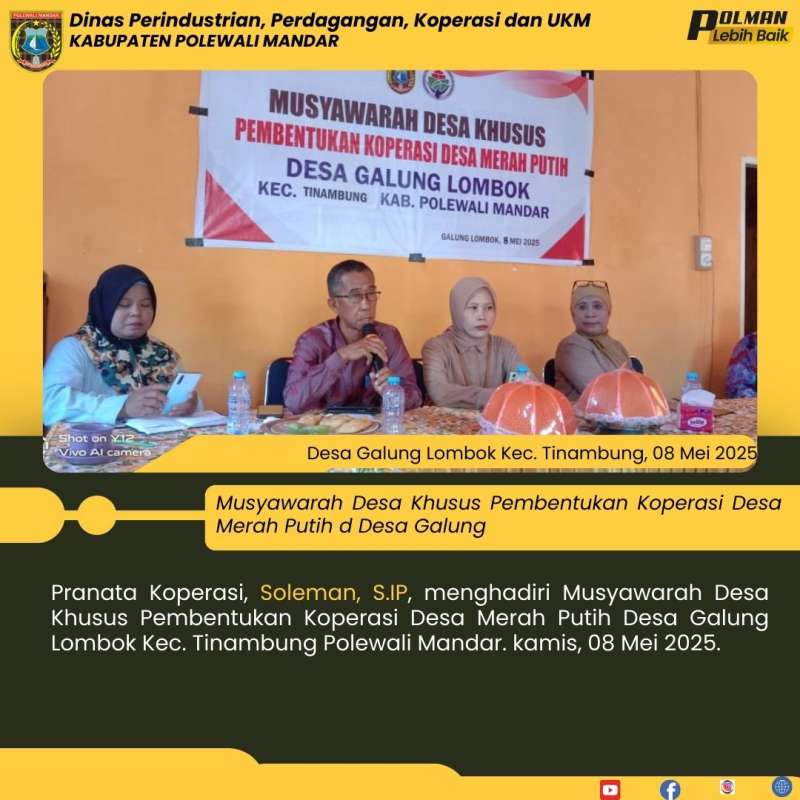 Pranata Koperasi, Soleman, S.IP, menghadiri Musyawarah Desa Khusus Pembentukan Koperasi Desa Merah Putih Desa Galung Lombok Kec. Tinambung Polewali Mandar. kamis, 08 Mei 2025.