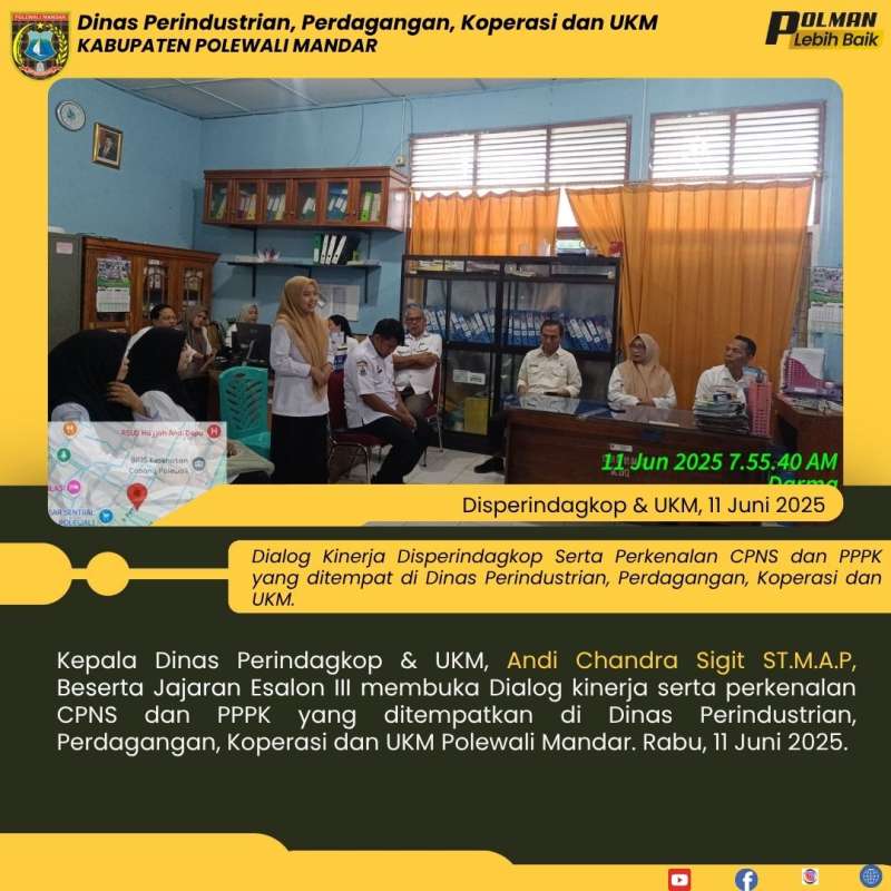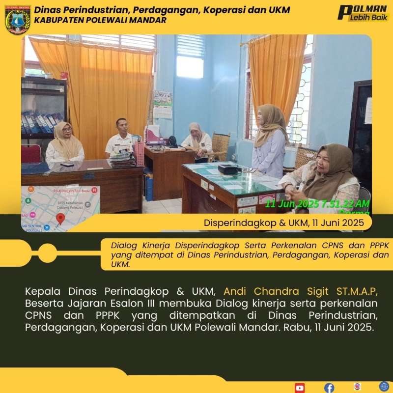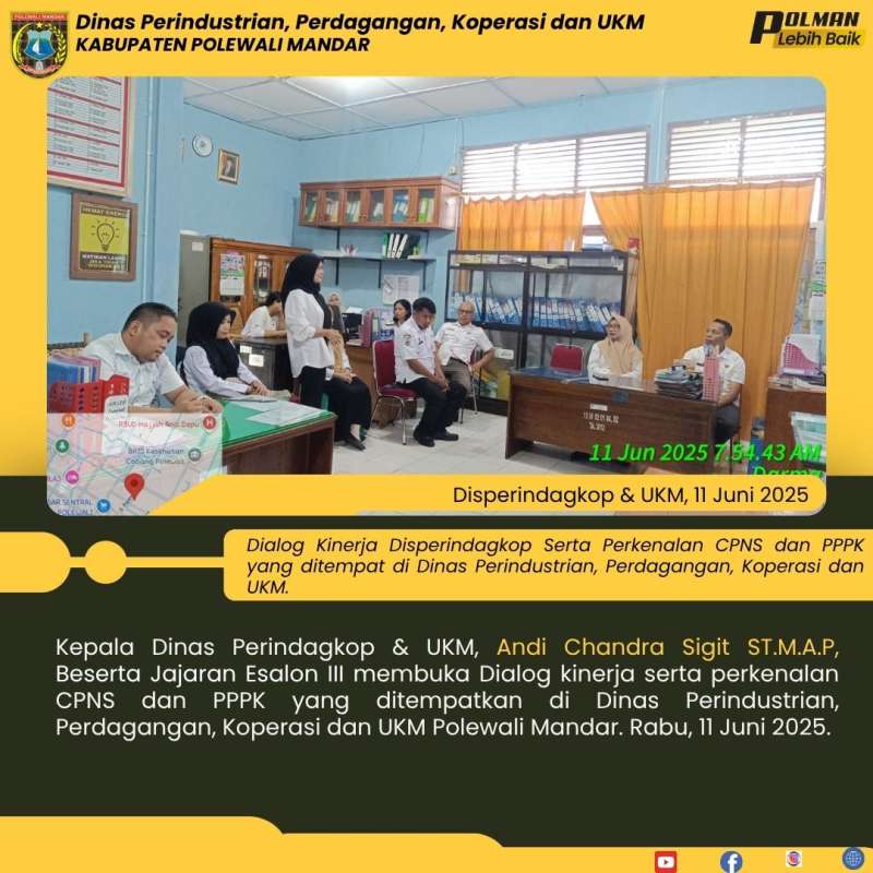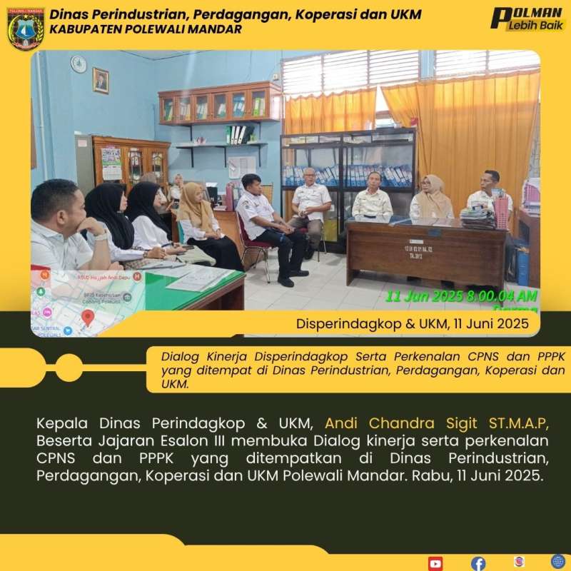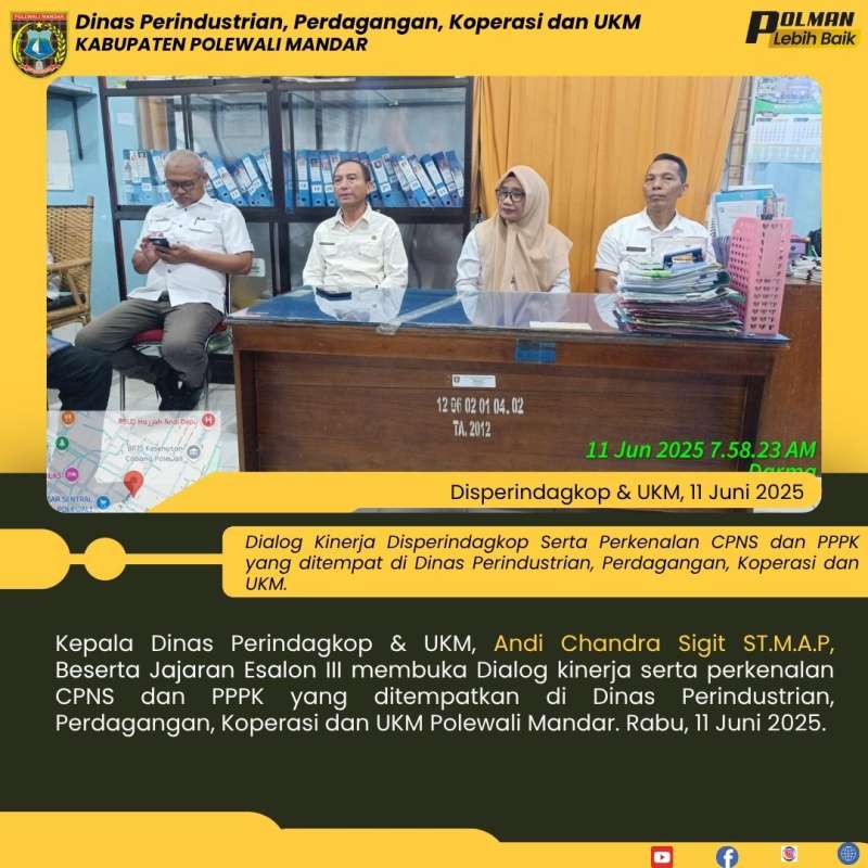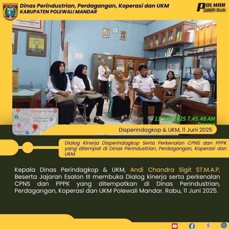 Kepala Dinas Perindagkop & UKM, Andi Chandra Sigit ST.M.A.P, Beserta Jajaran Esalon III membuka Dialog kinerja serta perkenalan CPNS dan PPPK yang ditempatkan di Dinas Perindustrian, Perdagangan, Koperasi dan UKM Polewali Mandar. Rabu, 11 Juni 2025.