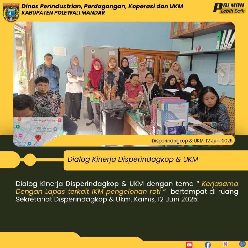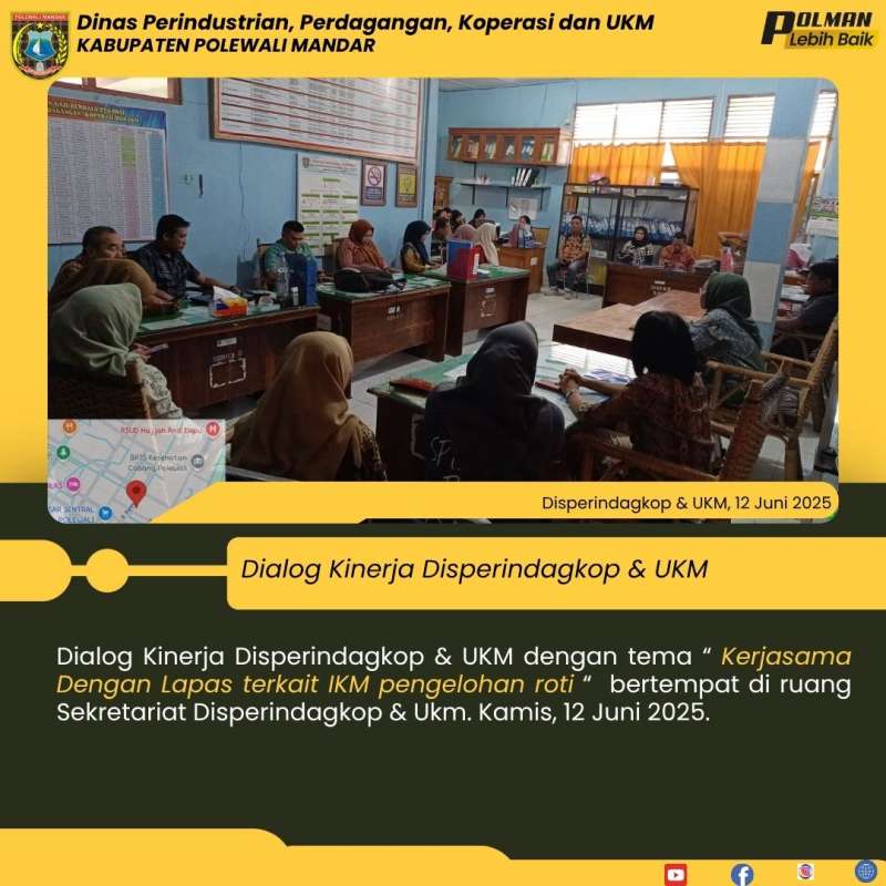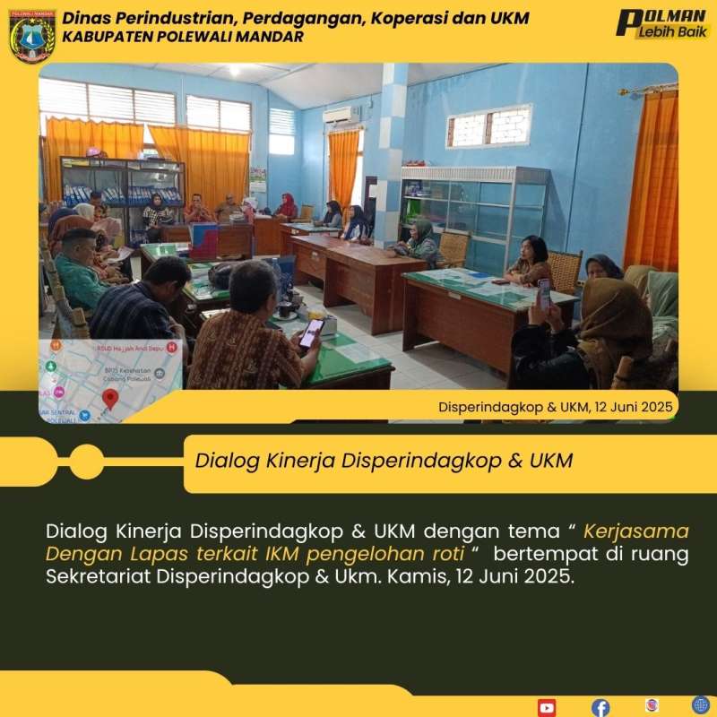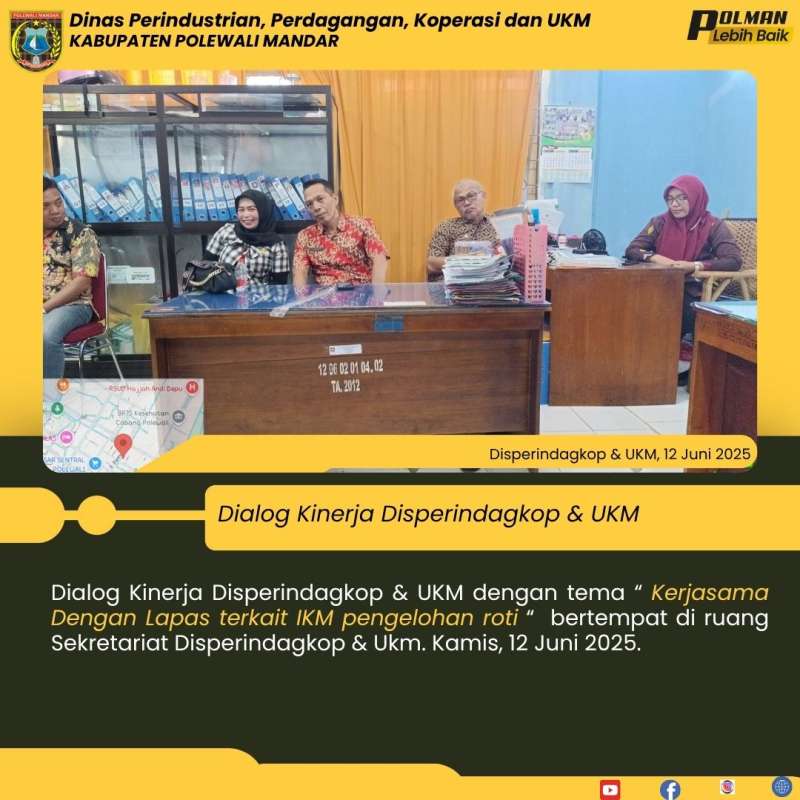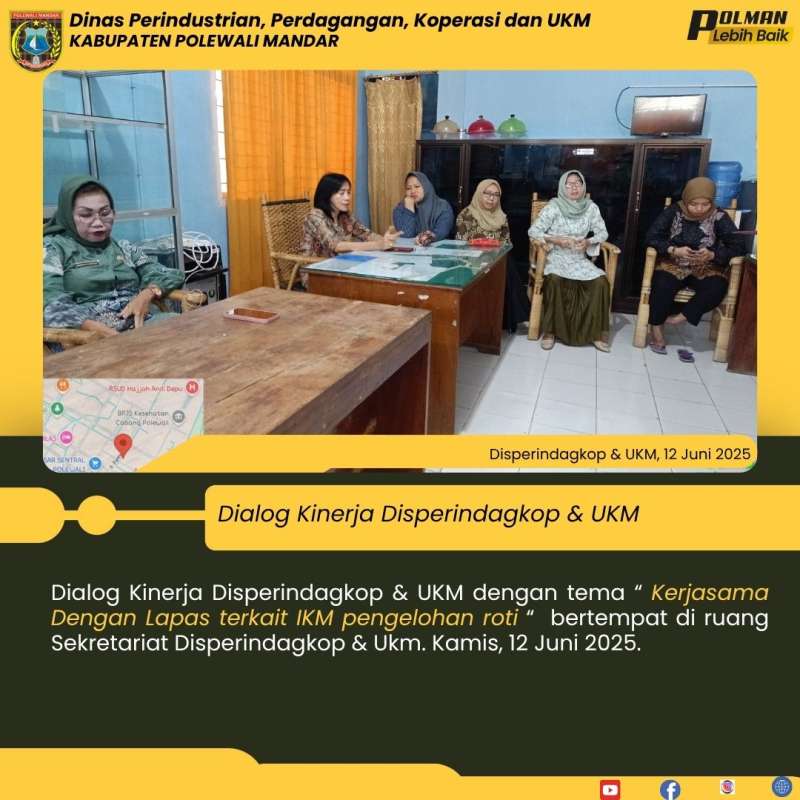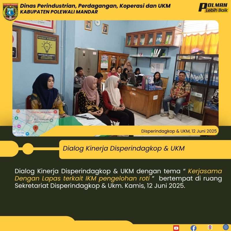 Dialog Kinerja Disperindagkop & UKM dengan tema “ Kerjasama Dengan Lapas terkait IKM pengelohan roti “ bertempat di ruang Sekretariat Disperindagkop & Ukm. Kamis, 12 Juni 2025.