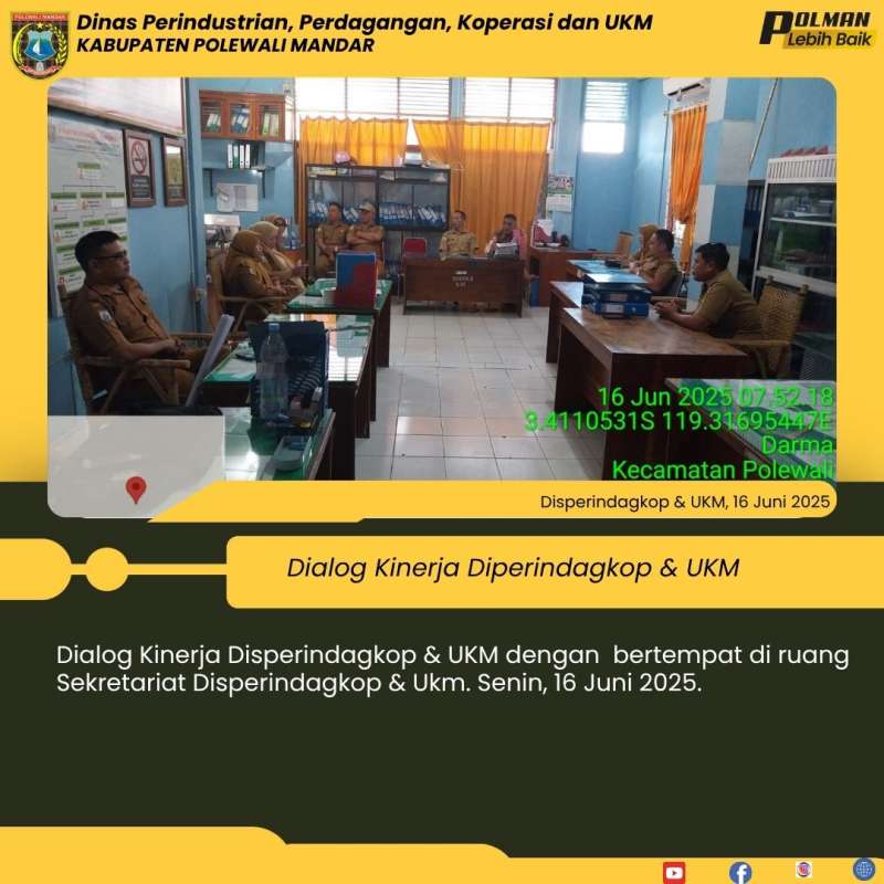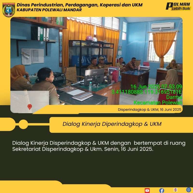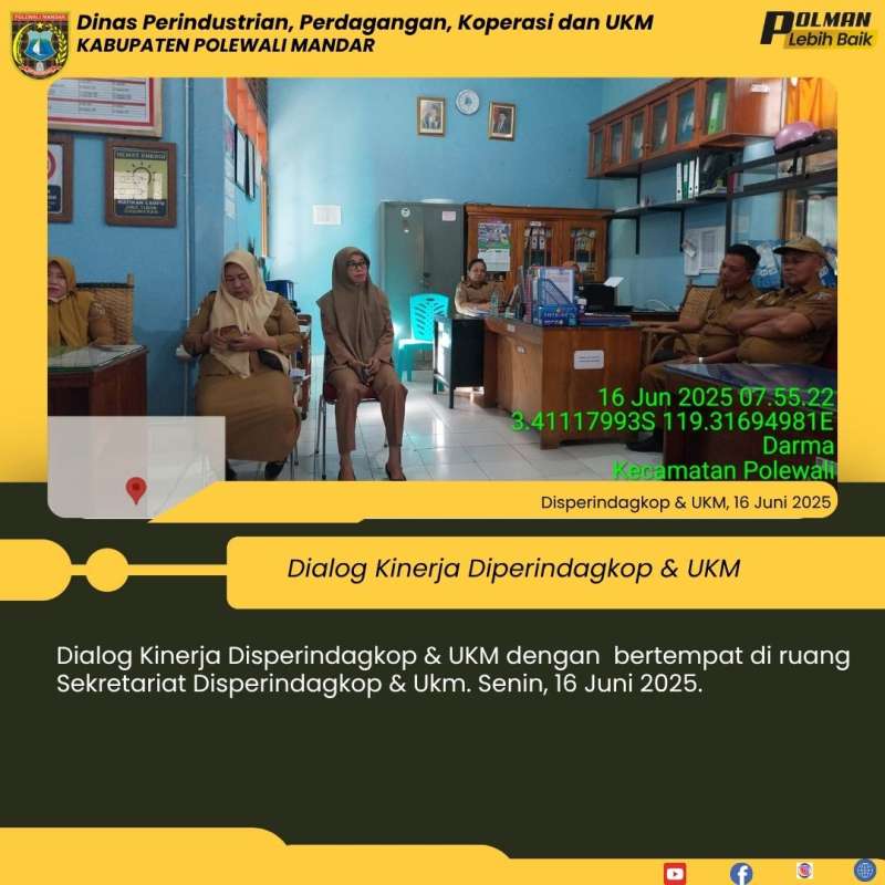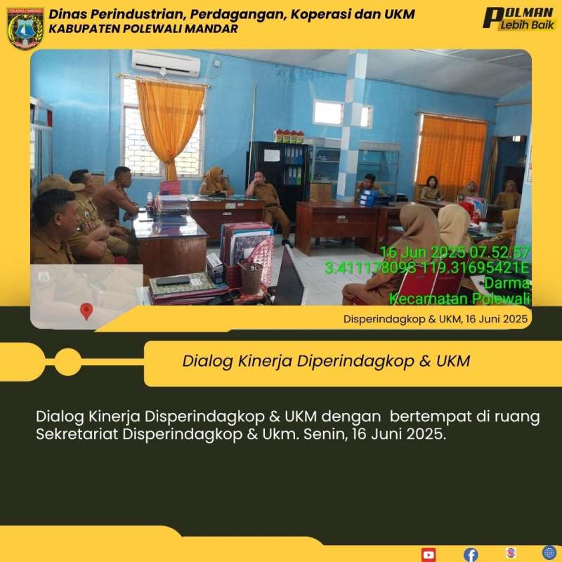 Dialog Kinerja Disperindagkop & UKM dengan bertempat di ruang Sekretariat Disperindagkop & Ukm. Senin, 16 Juni 2025.