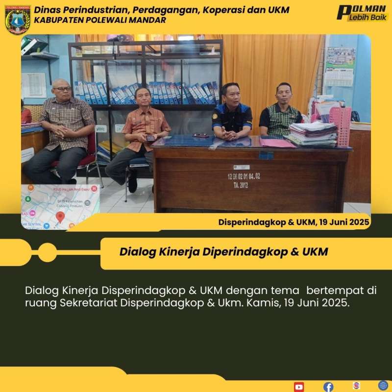 Dialog Kinerja Disperindagkop & UKM dengan tema bertempat di ruang Sekretariat Disperindagkop & Ukm. Kamis, 19 Juni 2025.