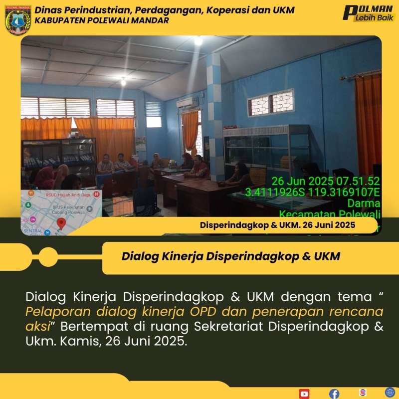 Dialog Kinerja Disperindagkop & UKM dengan tema “ Pelaporan dialog kinerja OPD dan penerapan rencana aksi” Bertempat di ruang Sekretariat Disperindagkop & Ukm. Kamis, 26 Juni 2025.