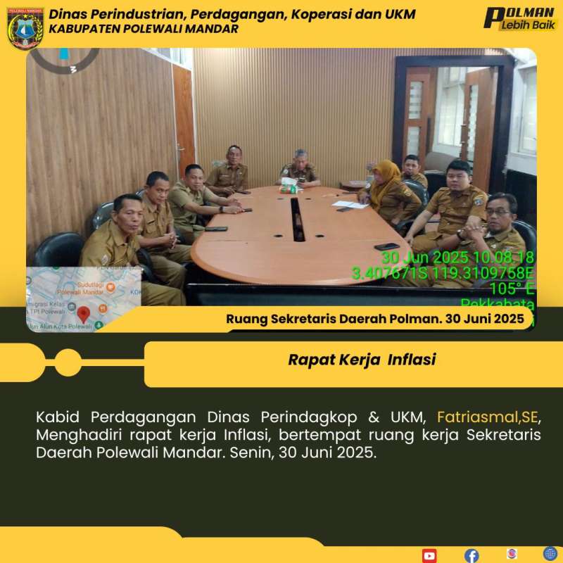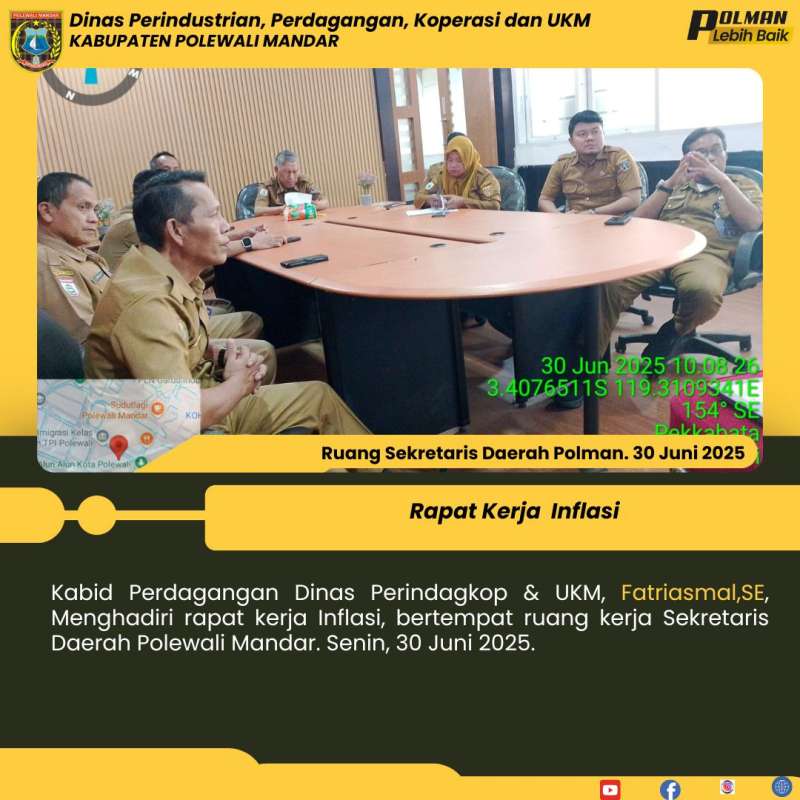 Kabid Perdagangan Dinas Perindagkop & UKM, Fatriasmal,SE, Menghadiri rapat kerja Inflasi, bertempat ruang kerja Sekretaris Daerah Polewali Mandar. Senin, 30 Juni 2025.