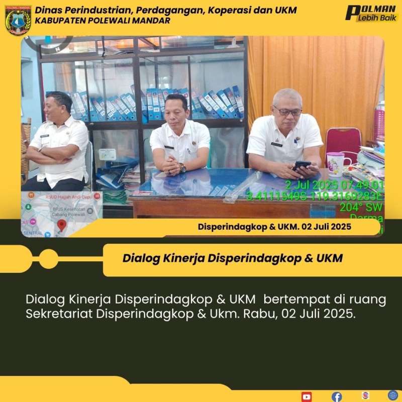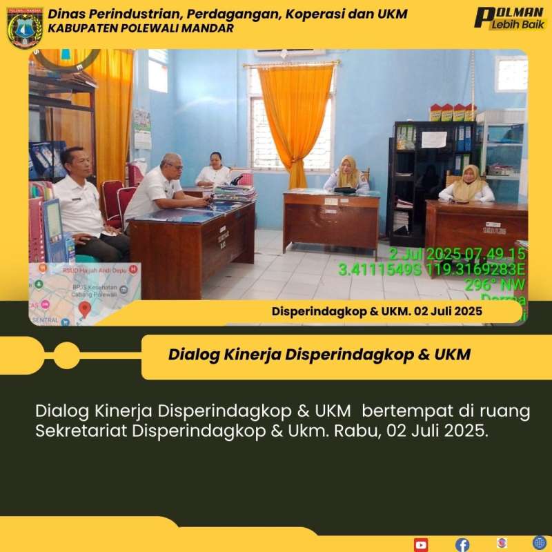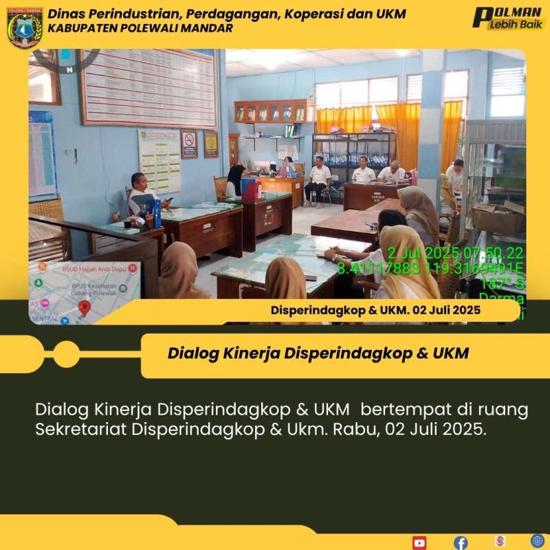 Dialog Kinerja Disperindagkop & UKM bertempat di ruang Sekretariat Disperindagkop & Ukm. Rabu, 02 Juli 2025.