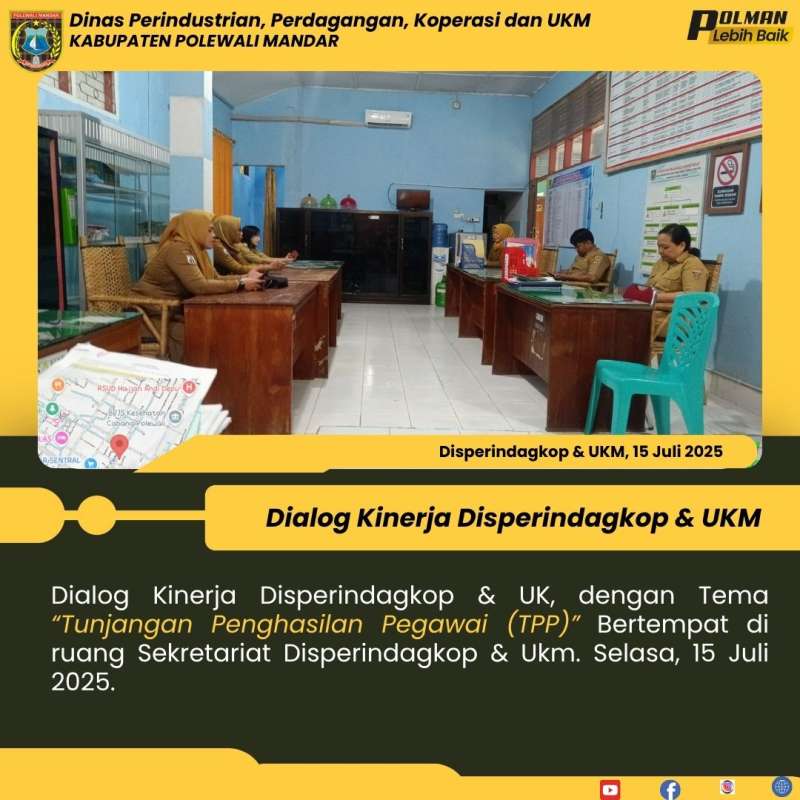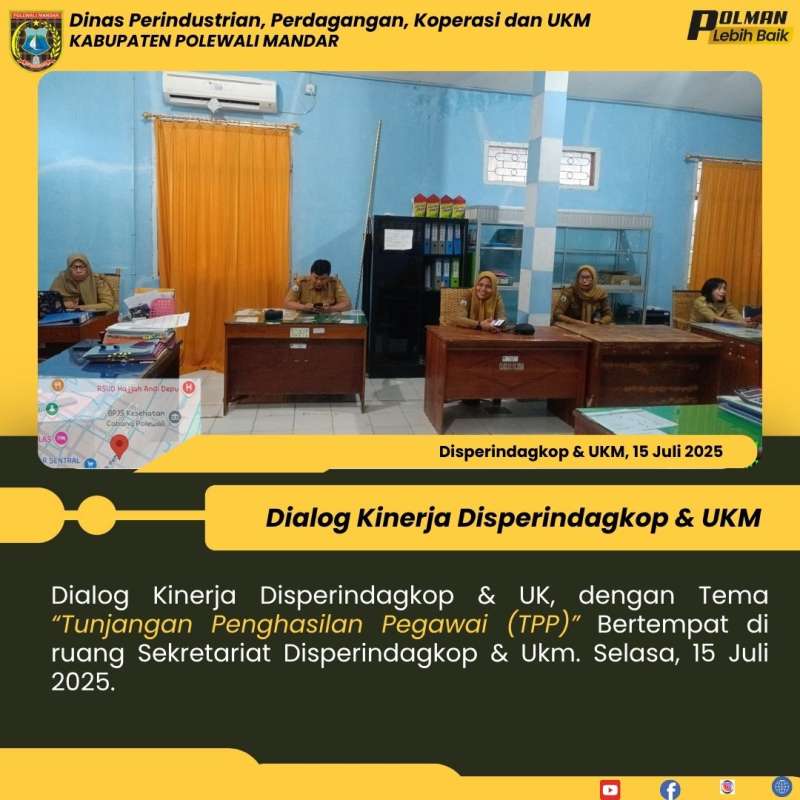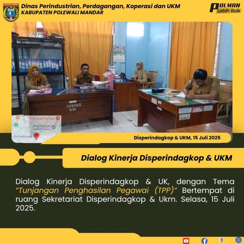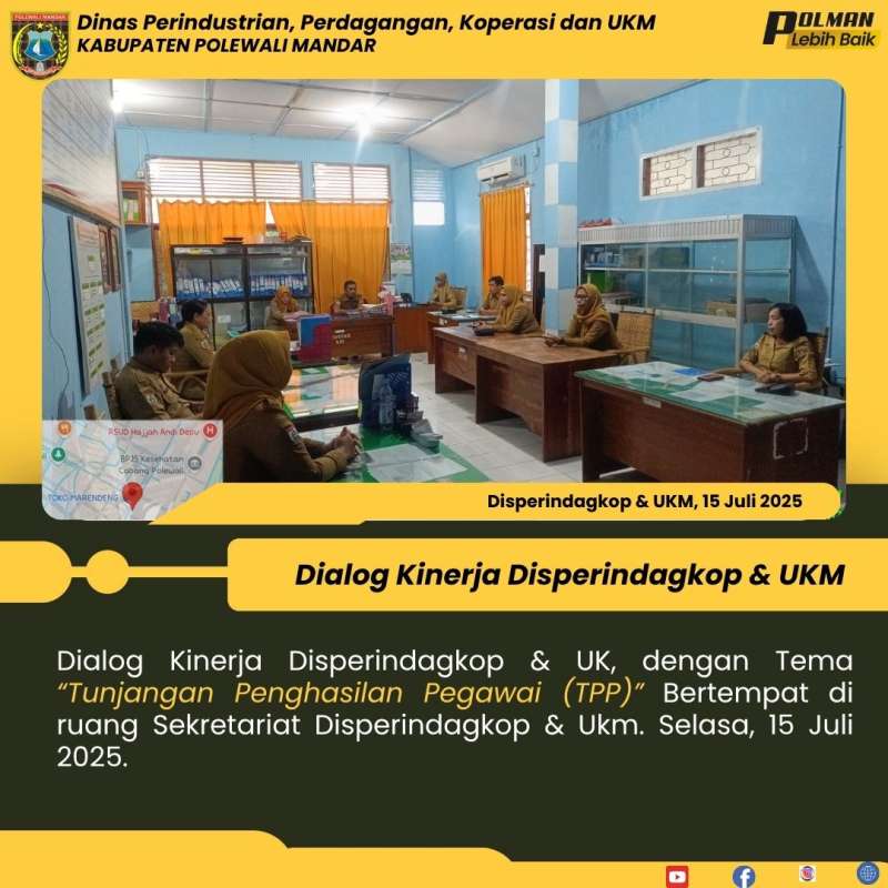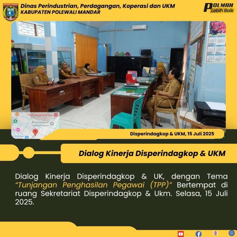Dialog Kinerja Disperindagkop & UK, dengan Tema “Tunjangan Penghasilan Pegawai (TPP)” Bertempat di ruang Sekretariat Disperindagkop & Ukm. Selasa, 15 Juli 2025.