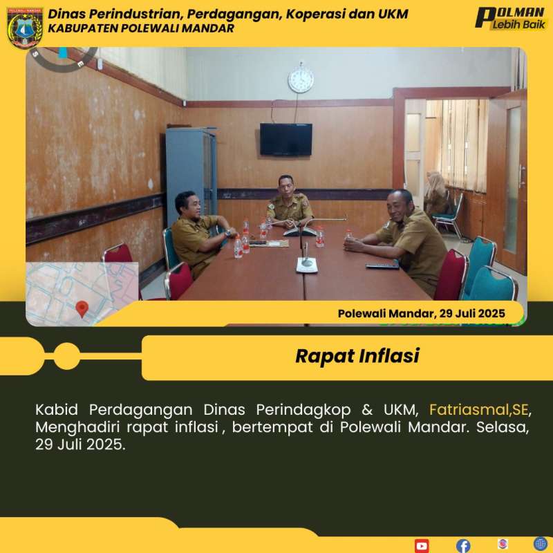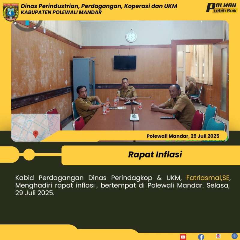 Kabid Perdagangan Dinas Perindagkop & UKM, Fatriasmal,SE, Menghadiri rapat inflasi , bertempat di Polewali Mandar. Selasa, 29 Juli 2025.