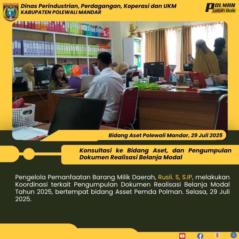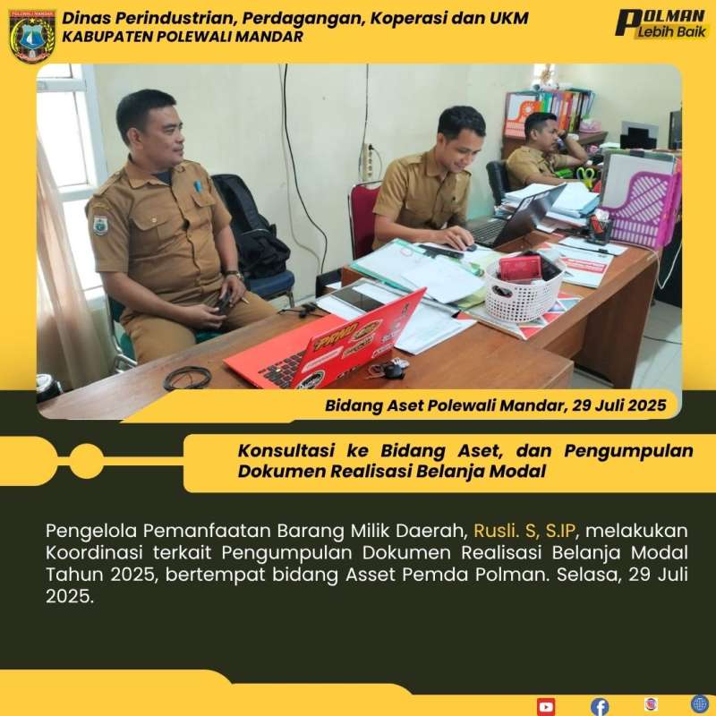 Pengelola Pemanfaatan Barang Milik Daerah, Rusli. S, S.IP, melakukan Koordinasi terkait Pengumpulan Dokumen Realisasi Belanja Modal Tahun 2025, bertempat bidang Asset Pemda Polman. Selasa, 29 Juli 2025.