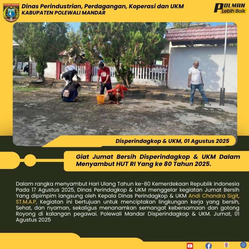 Giat Jumat Bersih Disperindagkop & UKM Dalam Menyambut HUT RI Yang ke 80 Tahun 2025. Jumat 01 Agustus 2025