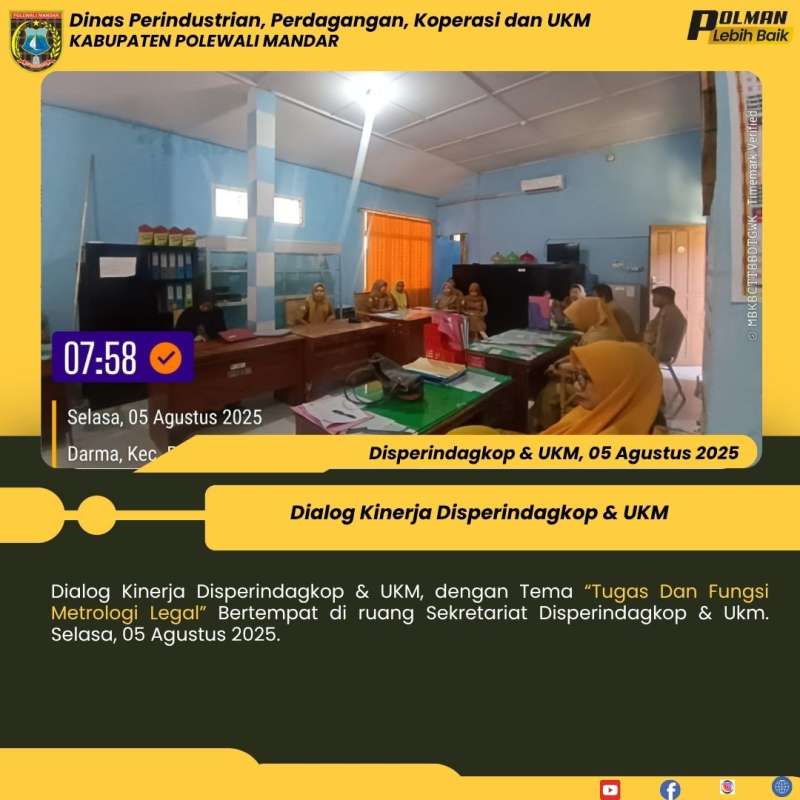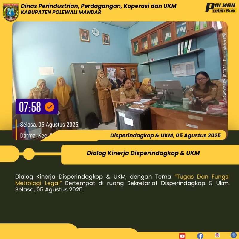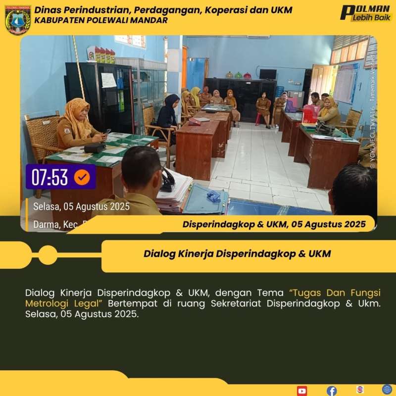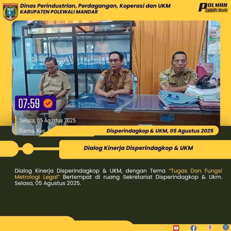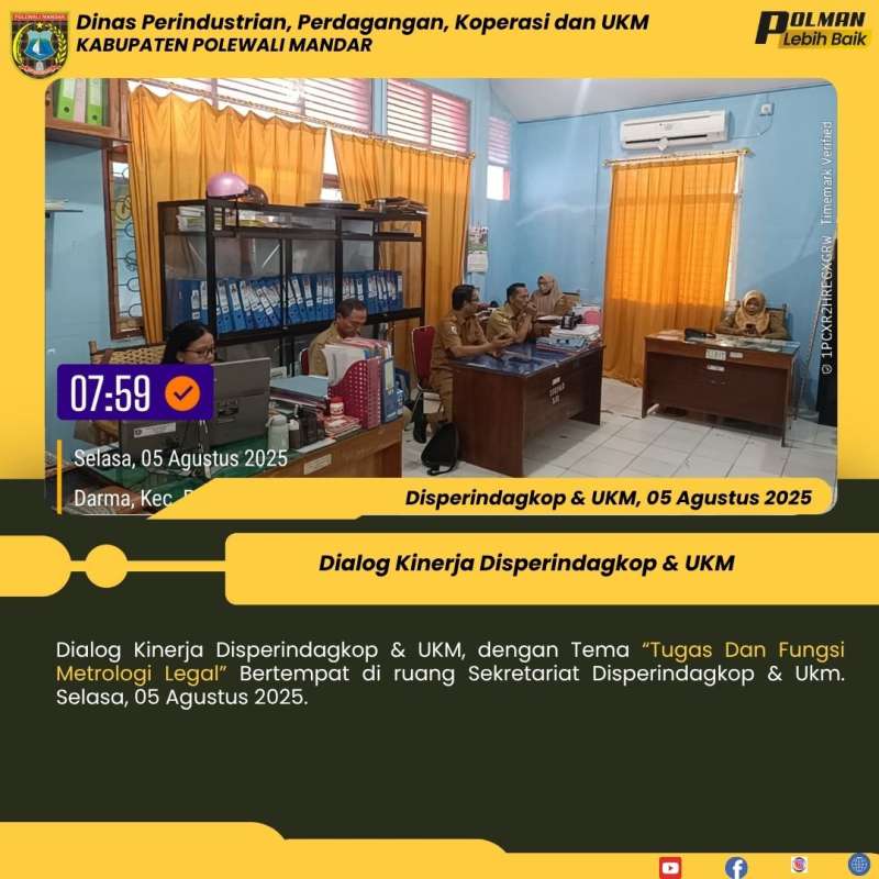 Dialog Kinerja Disperindagkop & UKM, dengan Tema “Tugas Dan Fungsi Metrologi Legal” Bertempat di ruang Sekretariat Disperindagkop & Ukm. Selasa, 05 Agustus 2025.