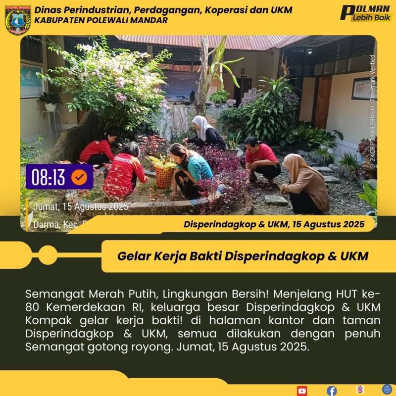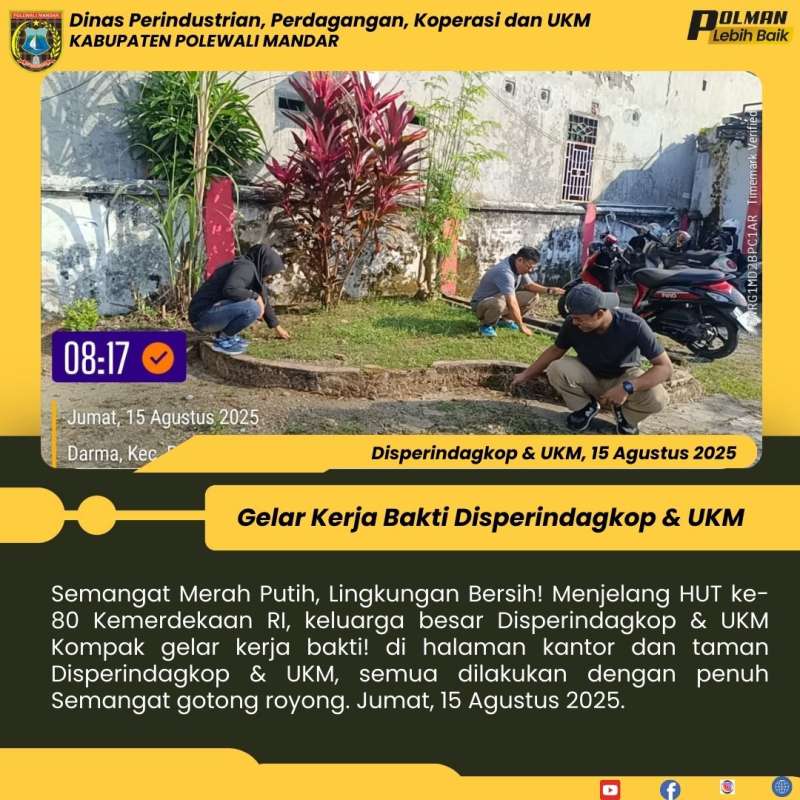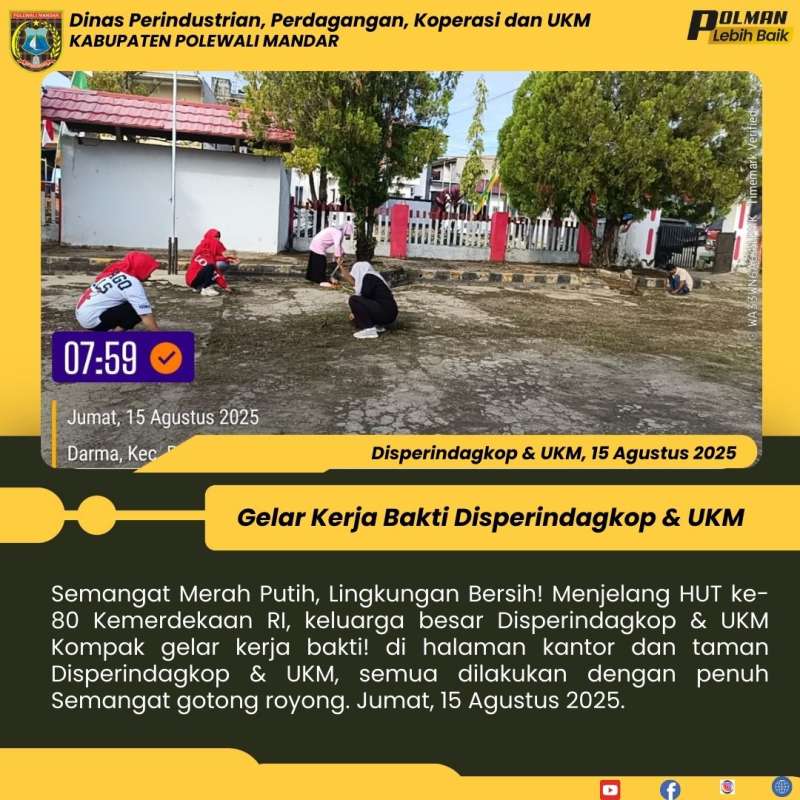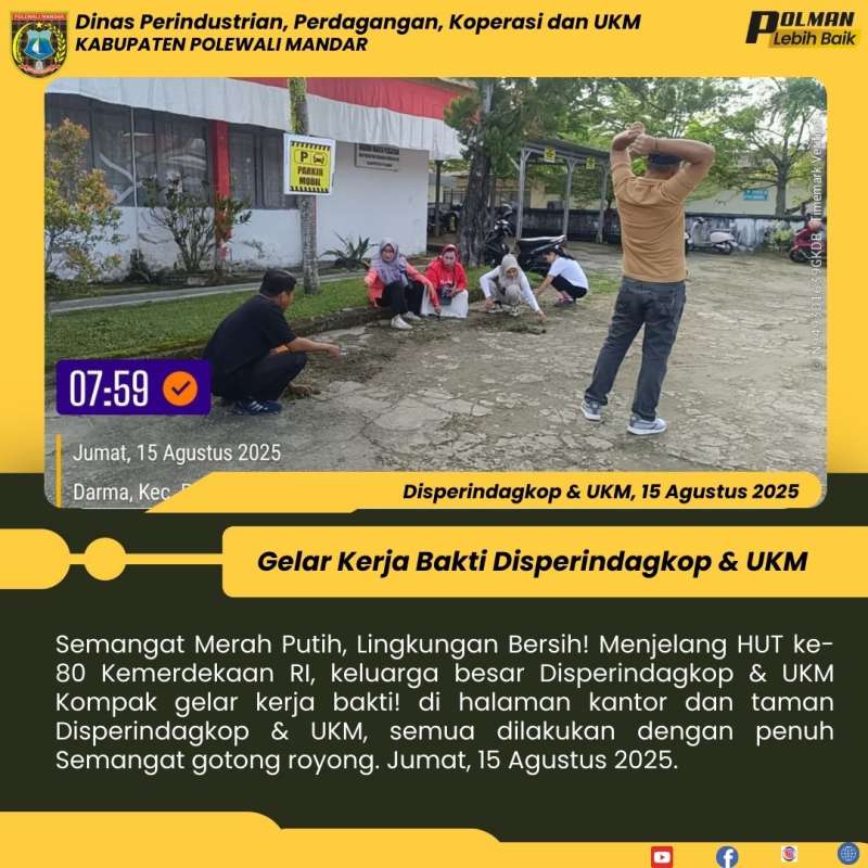 Semangat Merah Putih, Lingkungan Bersih! Menjelang HUT ke-80 Kemerdekaan RI, keluarga besar Disperindagkop & UKM Kompak gelar kerja bakti! di halaman kantor dan taman Disperindagkop & UKM, semua dilakukan dengan penuh Semangat gotong royong. Jumat, 15 Agustus 2025.