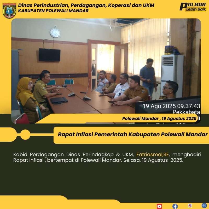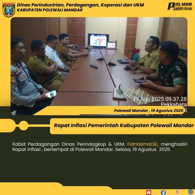 Kabid Perdagangan Dinas Perindagkop & UKM, Fatriasmal,SE, menghadiri Rapat inflasi , bertempat di Polewali Mandar. Selasa, 19 Agustus 2025.