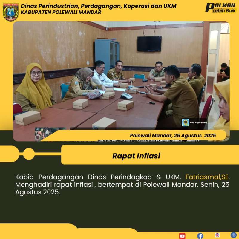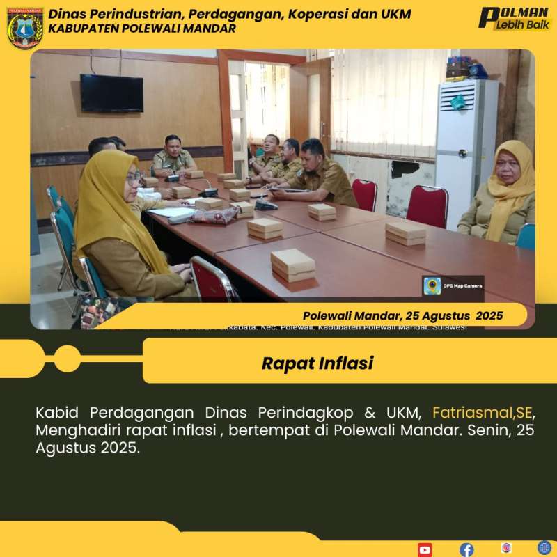 Kabid Perdagangan Dinas Perindagkop & UKM, Fatriasmal,SE, Menghadiri rapat inflasi , bertempat di Polewali Mandar. Senin, 25 Agustus 2025.