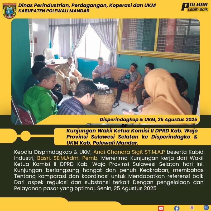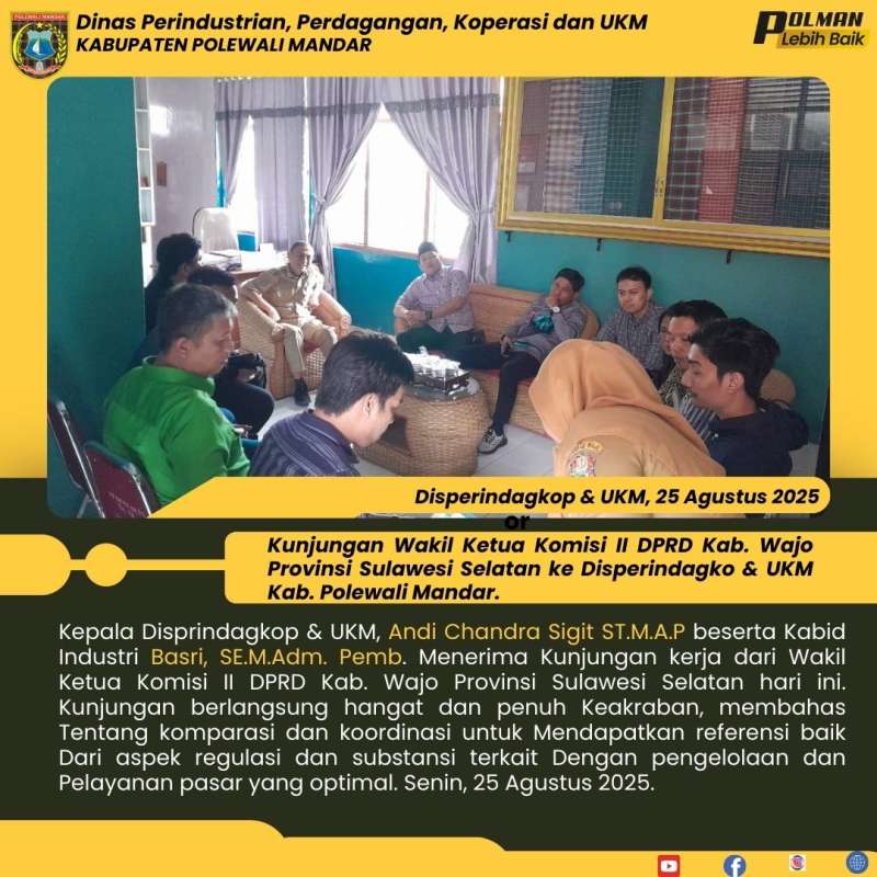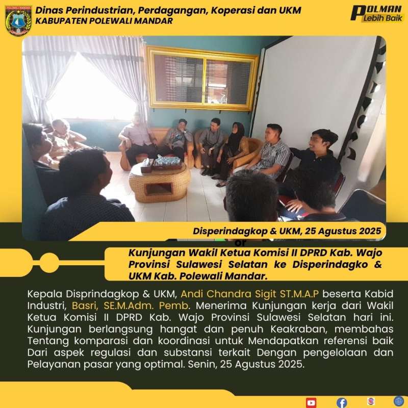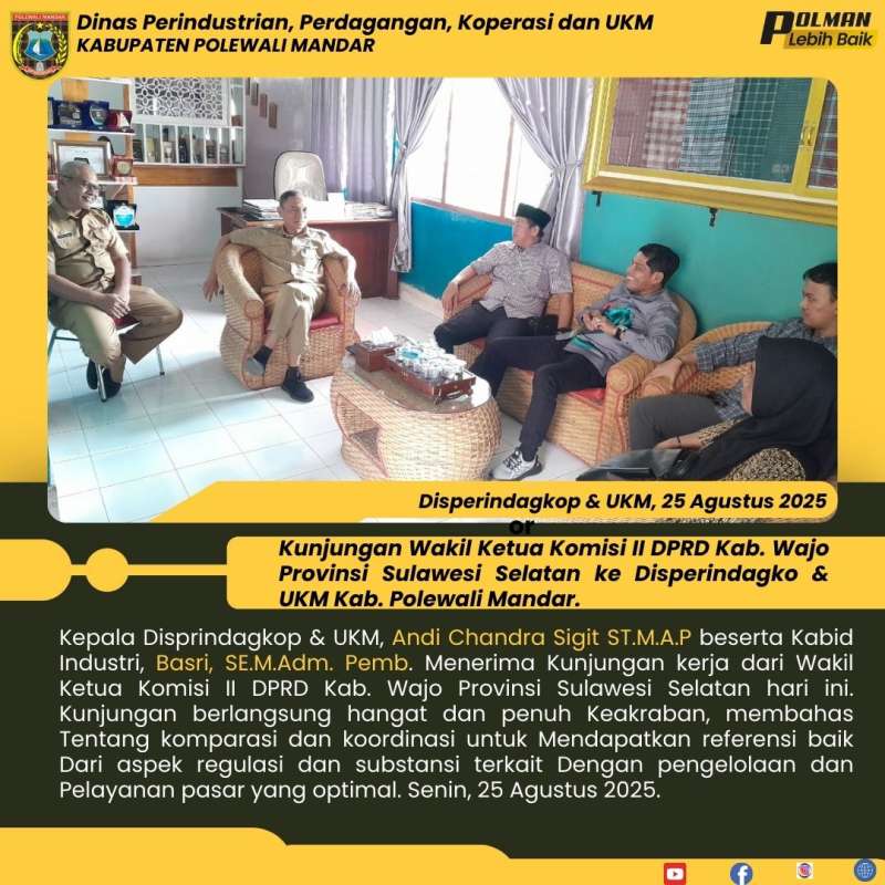 Kunjungan Wakil Ketua Komisi II DPRD Kab. Wajo Provinsi Sulawesi Selatan ke Disperindagko & UKM Kab. Polewali Mandar. Senin 25 Agustus 2025