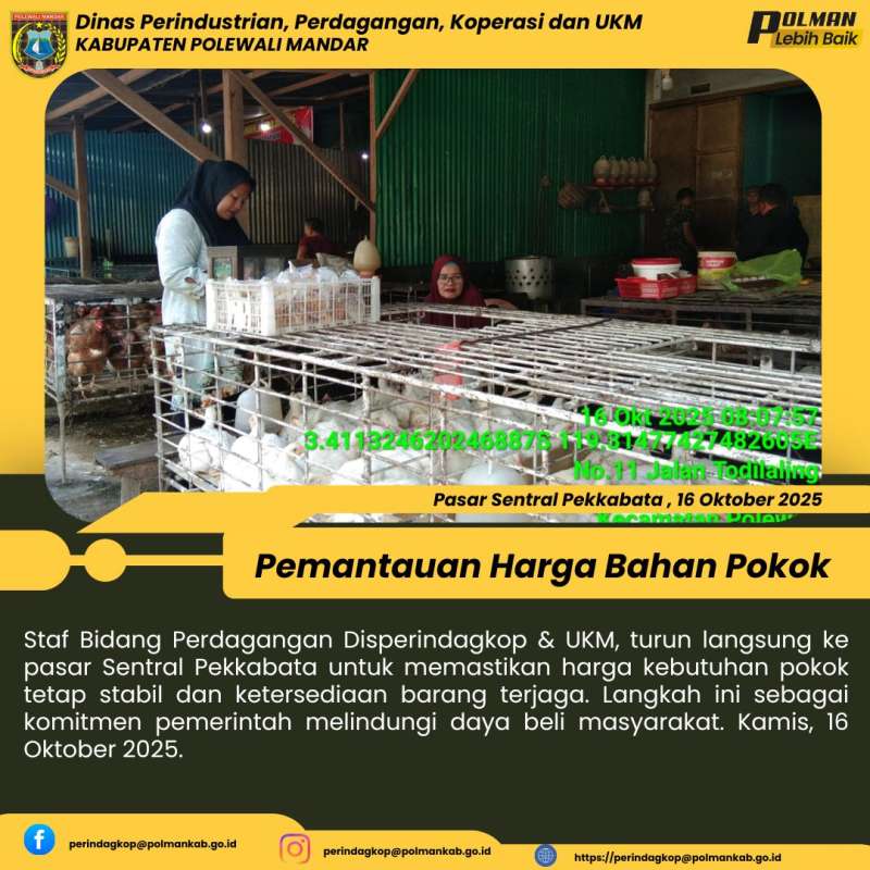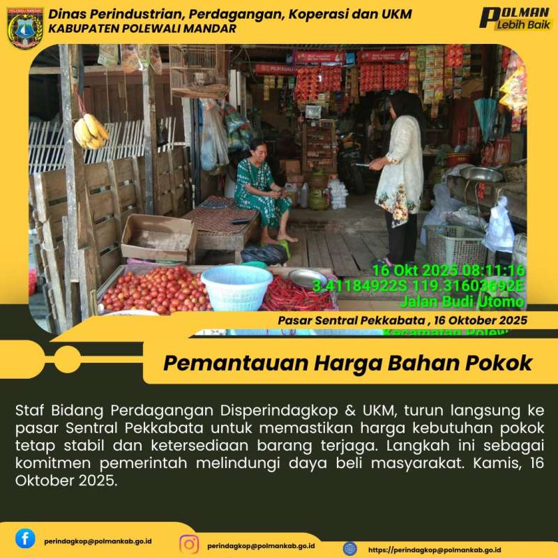 Staf Bidang Perdagangan Disperindagkop & UKM, turun langsung ke pasar Sentral Pekkabata untuk memastikan harga kebutuhan pokok tetap stabil dan ketersediaan barang terjaga. Langkah ini sebagai komitmen pemerintah melindungi daya beli masyarakat. Kamis, 16 Oktober 2025.