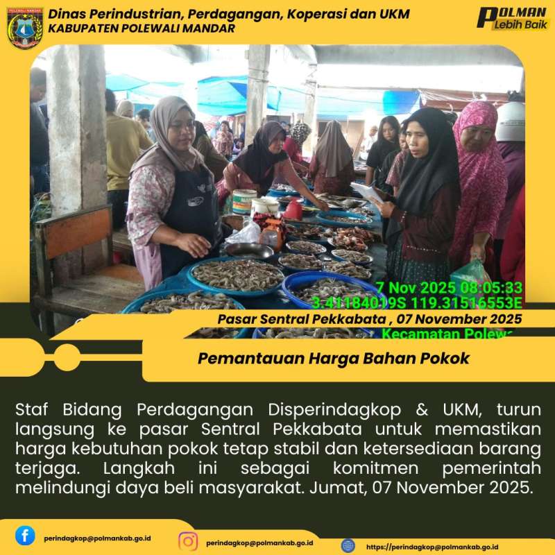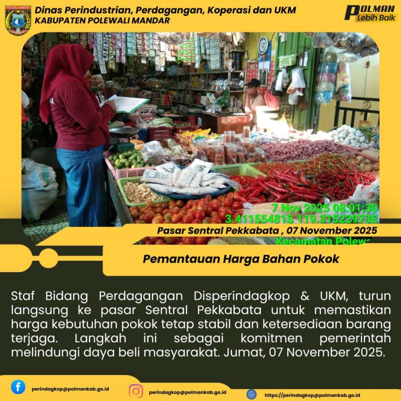 Staf Bidang Perdagangan Disperindagkop & UKM, turun langsung ke pasar Sentral Pekkabata untuk memastikan harga kebutuhan pokok tetap stabil dan ketersediaan barang terjaga. Langkah ini sebagai komitmen pemerintah melindungi daya beli masyarakat. Jumat, 07 November 2025.