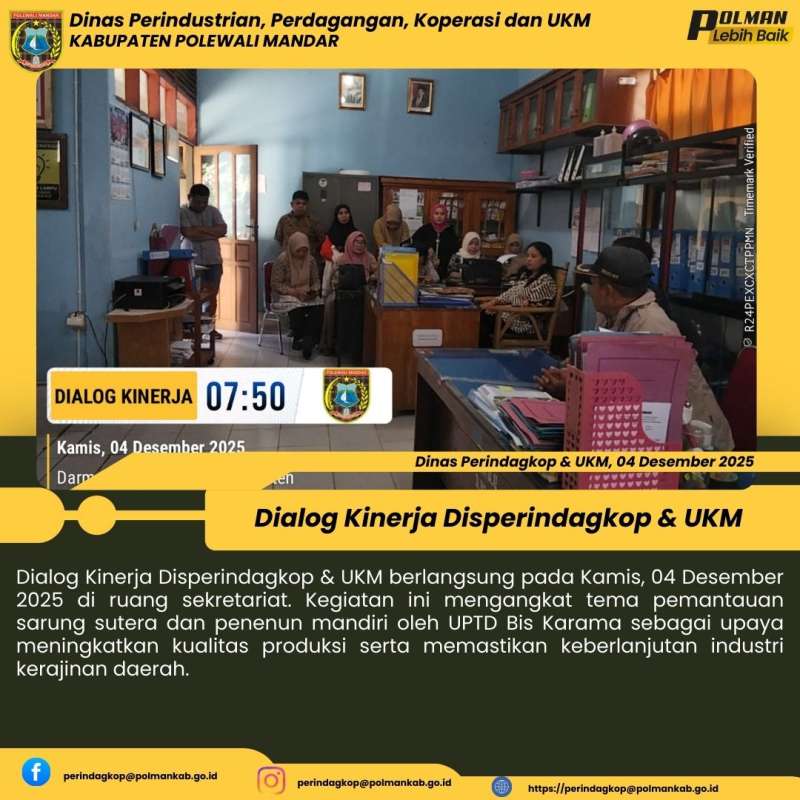 Disperindagkop & UKM Kabupaten Polewali Mandar menggelar Dialog Kinerja pada Selasa, 06 Januari 2026 bertempat di ruang sekretariat....
