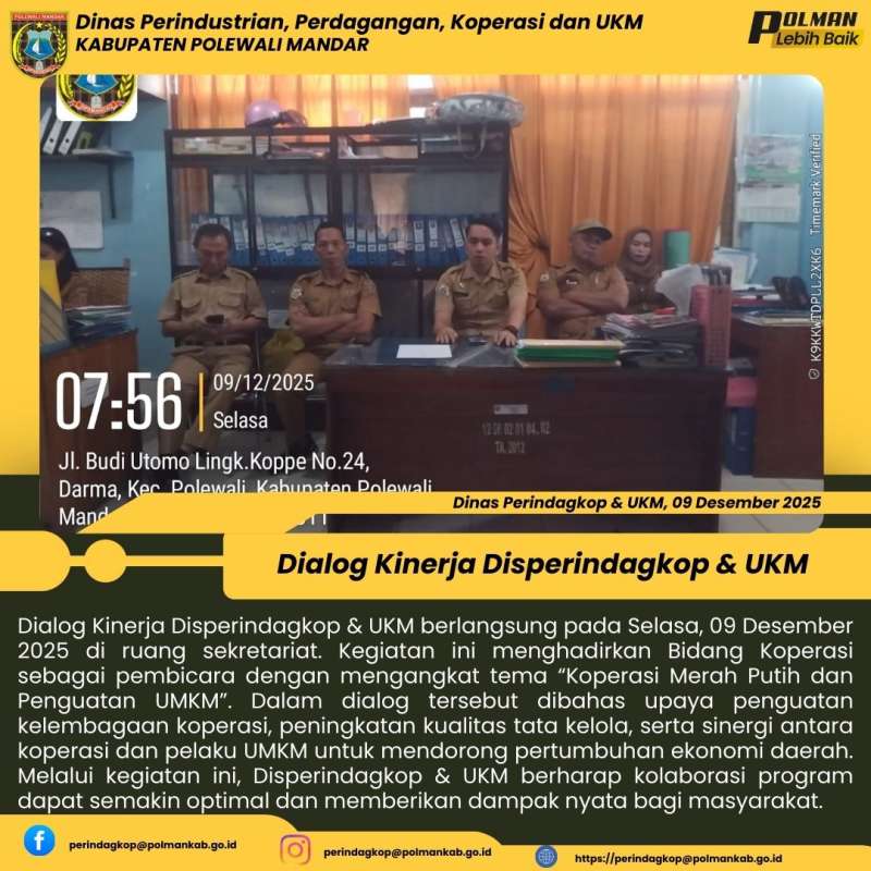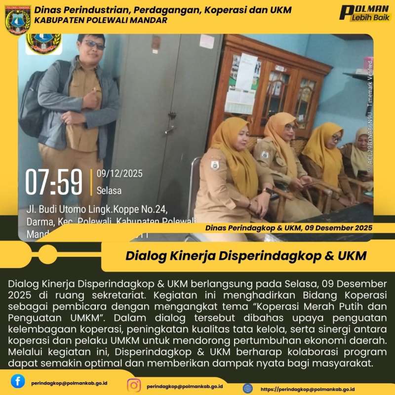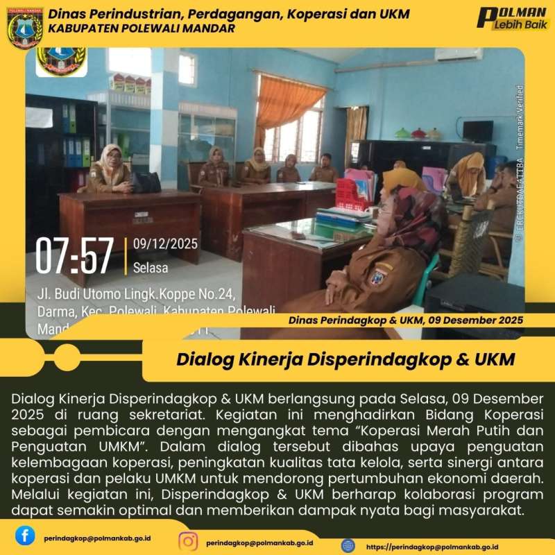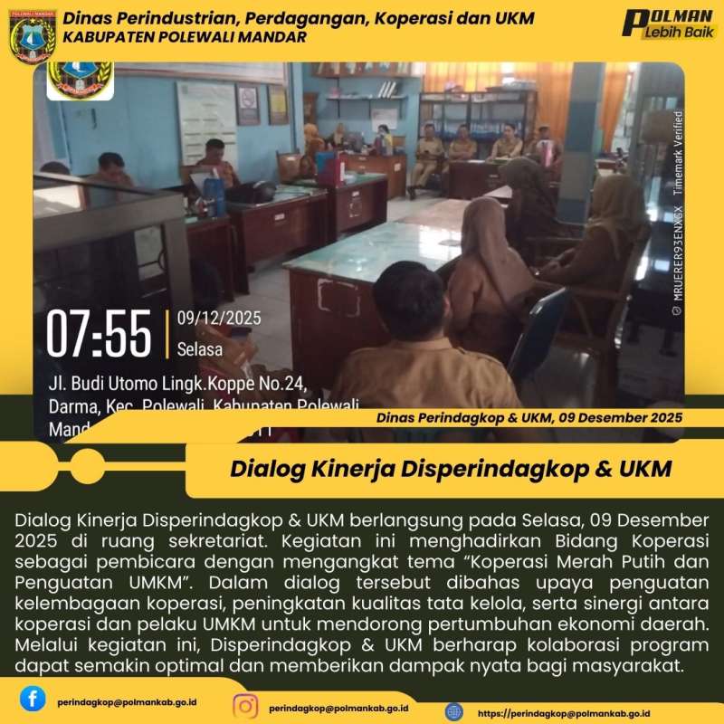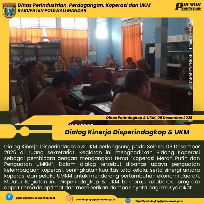 Disperindagkop & UKM Kabupaten Polewali Mandar menggelar Dialog Kinerja pada Selasa, 06 Januari 2026 bertempat di ruang sekretariat....