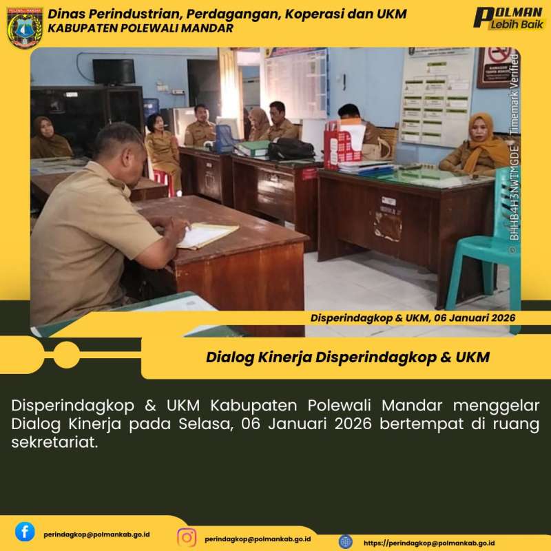 Disperindagkop & UKM Kabupaten Polewali Mandar menggelar Dialog Kinerja pada Selasa, 06 Januari 2026 bertempat di ruang sekretariat.